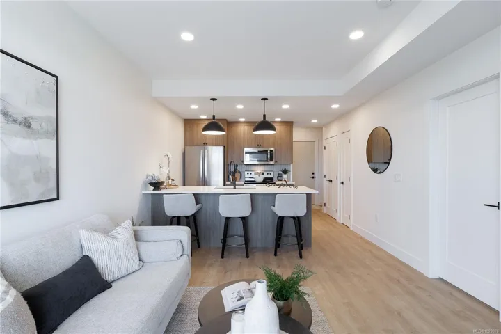 Welcome to Dalby’s on Dogwood, where luxury meets convenience in the heart of Ladysmith, BC. This exclusive boutique residence combines sophisticated design, modern amenities, and a prime central location. Enjoy breathtaking panoramic harbour views that create a stunning backdrop to everyday living. The five-storey building features just 25 thoughtfully designed homes and offers secure parking, an elegant lobby, and a shared rooftop patio. Residents will appreciate lifestyle-focused amenities including bike storage, a dog wash station, and beautifully landscaped grounds. Embrace coastal living with beaches, parks, and shops just minutes away. This 1 bed + den, 2 bath home boasts high-end finishes, in-suite laundry, included appliances, window coverings, and ocean views from your private patio. !