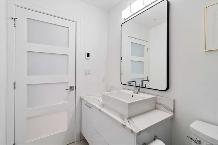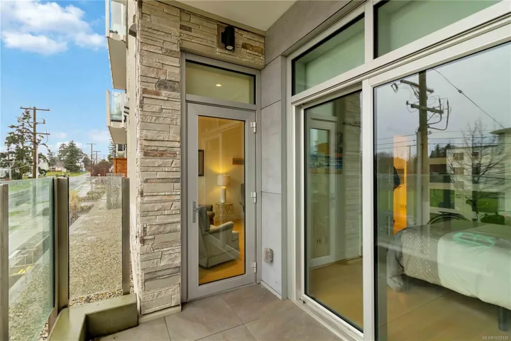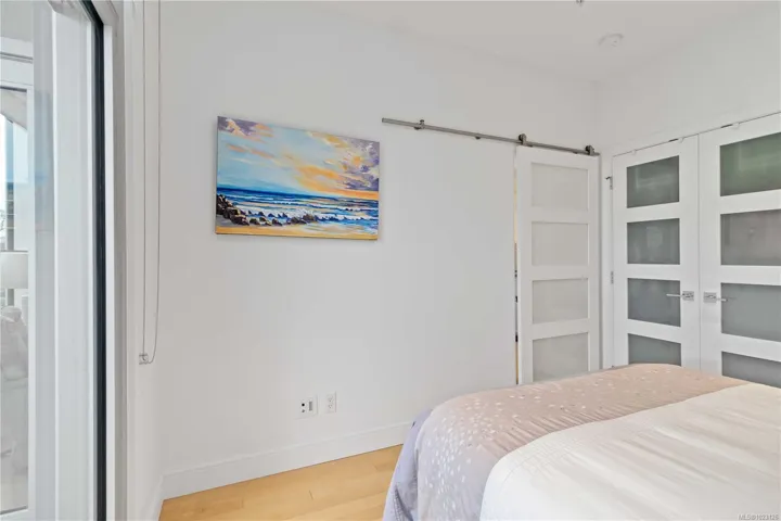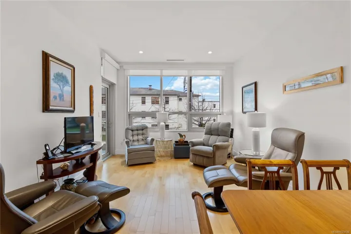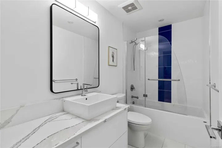Welcome to Westbay Quay, a modern steel & concrete building in the heart of Esquimalt’s vibrant waterfront community. This bright & thoughtfully designed 1 bdrm condo offers an efficient open-concept layout w/hardwood floors, oversized windows,& seamless flow between living, dining,& kitchen areas. The contemporary kitchen is beautifully finished w/quartz countertops, sleek cabinetry, & a premium Fisher Paykel/Blomberg appliance package including gas cooktop, built-in oven, integrated refrigerator & dishwasher, ideal for both everyday living & entertaining. The bedroom offers generous closet space & direct access to a private deck, while the modern 4-piece bathroom features heated tile floors, clean lines & quality finishes. Extra’s incl. in-suite laundry, A/C, secure underground parking (EV parking too), lots of visitor parking & storage locker, bike/kayak storage & professionally managed strata. This immaculate home offers an exceptional blend of lifestyle, quality & convenience.