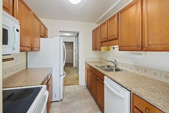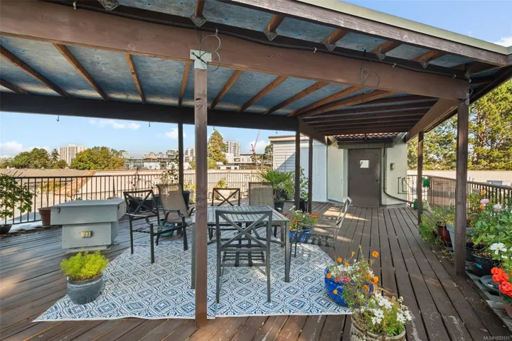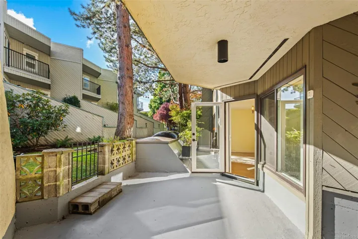Spacious Living & Peace of Mind at Chateauneuf. Downsize with confidence in a building renowned for its meticulous upkeep and proactive strata. This rare 1,309 sq. ft. ground-floor residence is the perfect solution for those looking to downsize with confidence, offering a unique balance of house-like autonomy and modern condo convenience. Enjoy two entries: a formal lobby and a private gated patio entrance—ideal for effortless departures and pet owners. The expansive floor plan features a Primary Suite with a walk-in closet and a versatile living area large enough for a home office or media room. Premium Amenities: EV charging, car wash bay, workshop, fitness room and a panoramic rooftop patio. This pet-friendly community is perfectly located for strolls to the Inner Harbour, Dallas Road waterfront, Cook Street Village, and Government House. Move in with the certainty that your investment and lifestyle are in expert hands.