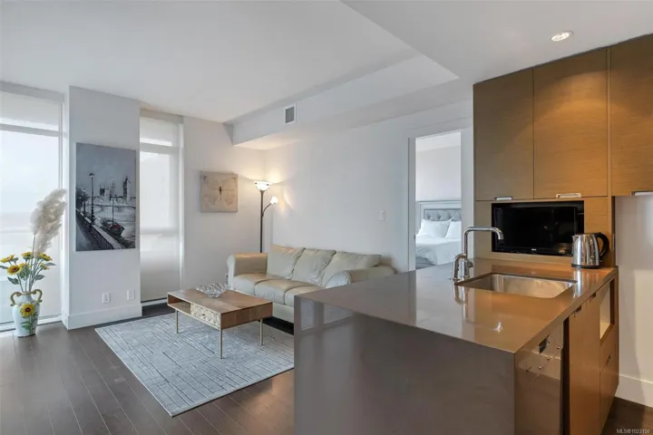 Supreme Residence for a Modern Lifestyle–This is the life at The Promontory! Discover the experiences of cozy condo living with the stunning views of Ocean, Mountain and City. This 1 Bed and 1 bath residence boosts a great size of living spaces for a single, couple or even a family to enjoy the lifestyle in one of the best condominium communities. Open concept Floor Plan offers a stylish Kitchen equipped w/gas stove, integrated refrigerator, tiled backsplash and peninsula island w/waterfall countertop. Floor-to-Ceiling windows truly enhance the brightness of the space and enjoying the views on the covered wrap-around balcony is timeless. Unit comes with in-suite laundry, 1 parking&Storage locker. Building offers bike storage, owner’s lounge with kitchen, fitness centre and concierge. Strata fee includes gas, heating, water and more. Mins to waterfront walkway, restaurants, Recreation&Westside Village Shopping Centre. Find your Perfect Fit at this Urban Retreat!