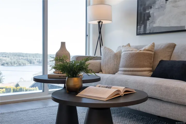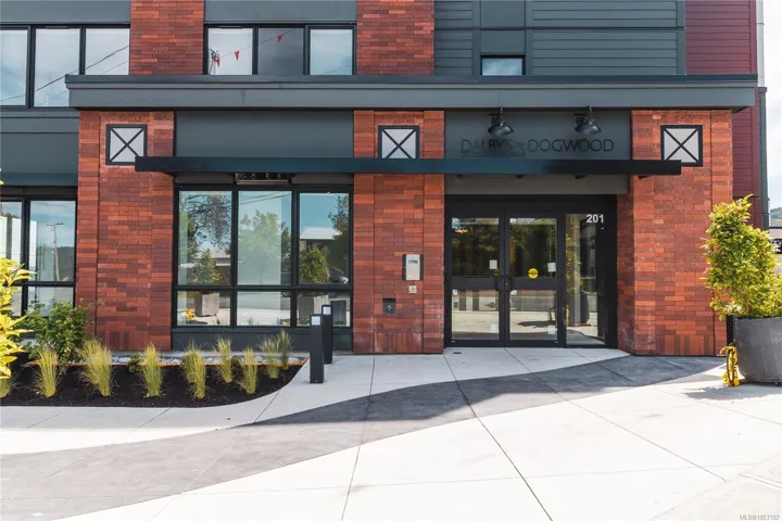 Welcome to Dalby’s on Dogwood, where luxury meets convenience in the heart of Ladysmith, BC. This exclusive boutique residence combines sophisticated design, modern amenities, and a prime central location. Enjoy breathtaking panoramic harbour views that create a stunning backdrop to everyday living. The five-storey building features just 25 thoughtfully designed homes and offers secure parking, an elegant lobby, and a shared rooftop patio. Residents will appreciate lifestyle-focused amenities including bike storage, a dog wash station, and beautifully landscaped grounds. Embrace coastal living with beaches, parks, and shops just minutes away. This 1 bed + den, 2 bath home boasts high-end finishes, in-suite laundry, included appliances, window coverings, and ocean views from your private patio. Book your private showing today!