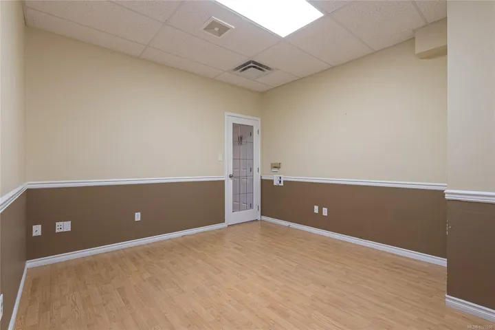 Zoned MU1 this ground floor commercial strata office space in a mixed-use development offers 579 sq. ft of thoughtfully renovated space, featuring a foyer, reception area, common area and 3 large private offices as well as a convenient two-piece bathroom. Uses include office space, retail, food services, personal services, medical offices. One parking spot is included. Ideally situated in Langford’s downtown core the location provides easy access to nearby amenities and parking. An outstanding option for both investors and owner-occupiers. Unit 103 and 105 should be purchased together as they are combined via a common foyer and air conditioning system. Unit 107, right next door, is also available if more area is needed to expand. The 3 units together would provide 1727 sq ft of space.