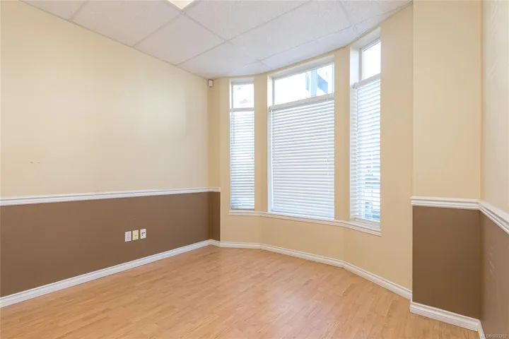 Zoned MU1 this ground floor commercial strata office space in a mixed-use development offers 575 sq. ft of thoughtfully renovated space, featuring a spacious open work area, a private office and a convenient two-piece bathroom. Uses include office space, retail, food services, personal services, medical offices. One parking spot is included. Ideally situated in Langford’s downtown core the location provides easy access to nearby amenities and parking. An outstanding option for both investors and owner-occupiers. Unit 103 and 105 should be purchased together as they are combined via a common foyer and air conditioning system. Unit 107, next door, is also available if more area is needed to expand. The 3 units together would provide 1727 sq ft of space.
