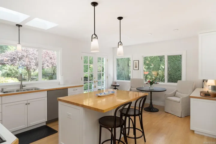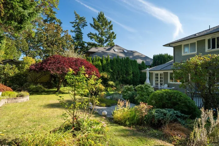 Welcome to 2944 Tudor Avenue, an exceptional West Coast home featuring ocean views in prestigious Ten Mile Point. Situated on a beautifully landscaped, south-facing 0.32-acre lot, just 100 paces from the Pacific, this architecturally redesigned 5-bed, 4-bath home offers 4,200sqft of refined living. Enjoy radiant-heated oak & limestone floors, a chef’s kitchen featuring French doors opening to an English-style garden oasis. The primary suite features a custom walk-in closet, spa-inspired ensuite, & stunning ocean/mountain views. The lower level offers a guest suite with a full kitchen, laundry, gym, wine room, & custom-designed library. Additional highlights include a heated double garage, 9-zone irrigation, & on-demand hot water. Thoughtfully designed with timeless finishes & surrounded by mature trees, this home offers tranquility, privacy, & effortless proximity to beaches, parks, & UVic.