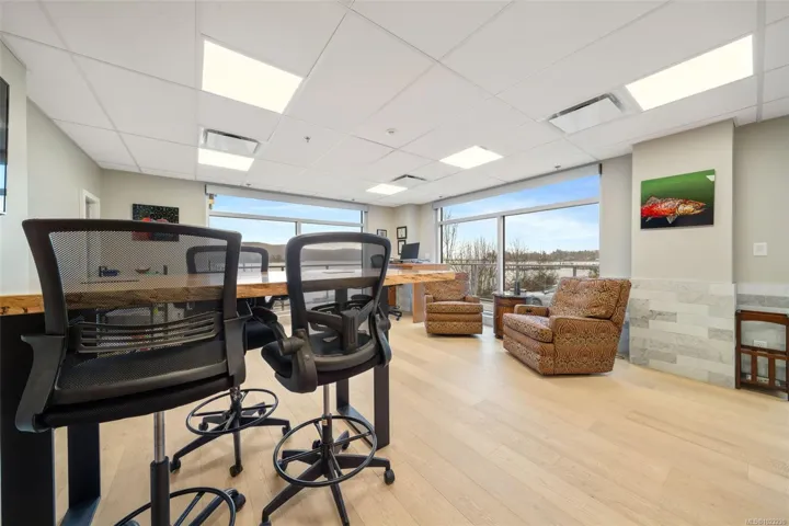 The professional space you’ve been dreaming of. This unique commercial office is designed to impress. Located on the Sooke Harbour, it offers unparalleled SE-facing ocean views with floor-to-ceiling windows that flood the space with natural light. Showcasing high-end finishes throughout, this office was custom-designed by the original developers of The Residences of Sooke Harbour, ensuring both quality & timeless appeal. The thoughtfully planned layout features nearly 700 sq ft of functional & flexible space, incl: an open-concept kitchen/office area, additional room with a door for added privacy & a 2-pcs bath. This wheelchair-friendly unit offers 2 entrances. The rear exit leads directly to your covered, designated parking stall, with additional visitor parking available. This is a space you’ll be proud to call your own, perfect for professionals seeking a premium, inspiring environment. Endless possibilities & an opportunity to invest in your future for less than the cost of rent!