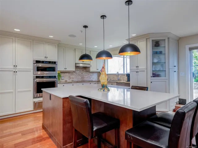 Enjoy fabulous Inner Harbour, Marina yacht views & stunning sunsets from this 2605sf spacious 3–4 bedroom, 4-bathroom townhouse in the prestigious Songhees community. Designed for comfort & style, this home features hardwood floors throughout, an open-concept living/dining area, & floor-to-ceiling windows that fill the space with natural light. Spacious kitchen with high end appliances, a wet bar with wine fridge, built in desk & a huge island for that “kitchen party”. The private double garage offers convenience/storage, while the waterfront walkway is just steps from your door. The primary suite is luxurious w/ a spa-like ensuite and a sunny balcony. Capture the sun on one of the three outdoor sitting areas! Perfect for entertaining, this home provides seamless indoor-outdoor living. Walk to downtown, marinas, restaurants, and parks. A very well run strata, and an excellent location make this a rare opportunity for waterfront living at its finest!
