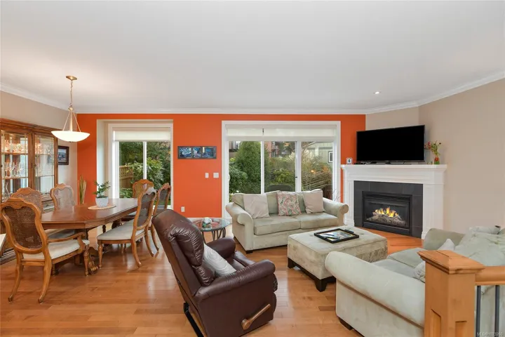 Indoor-Outdoor Flow: Large sliding doors open to a private, sun-drenched patio overlooking lush green space.