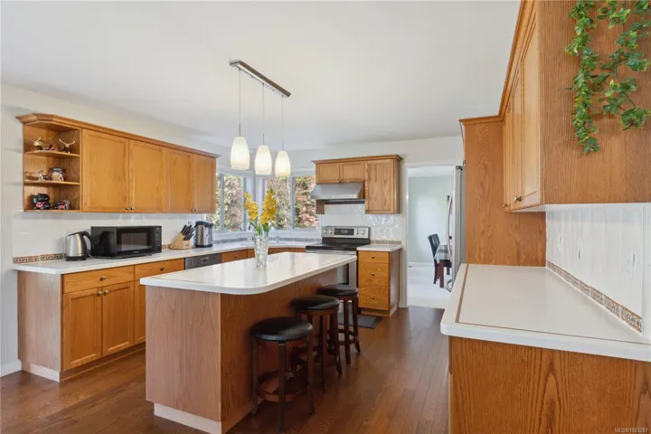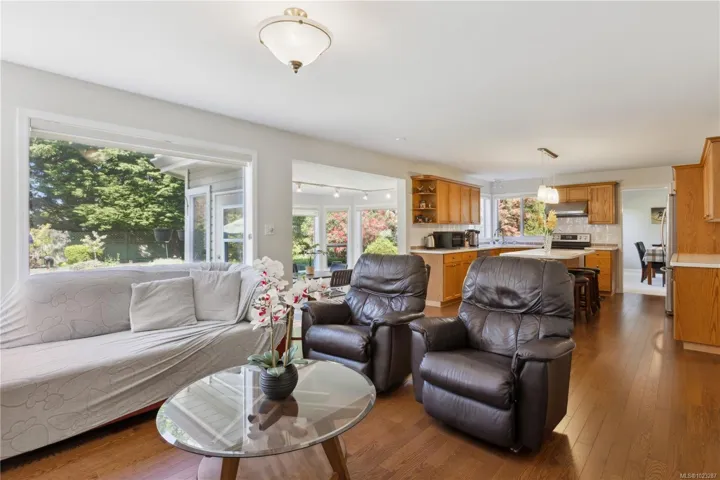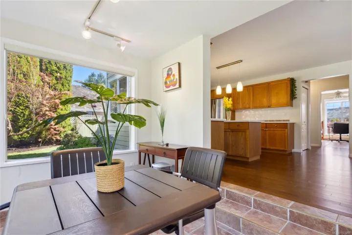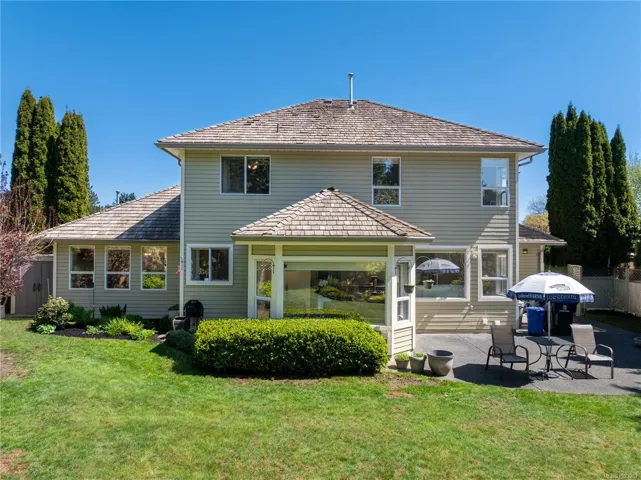 Welcome to this beautifully maintained Crown Isle home, offering 4bed/3bath over 2300 sqft of living space on 10,019 sqft lot. Upon entry, you are welcomed into bright formal living and dinning rooms, featuring a cozy natural gas fireplace. These spaces offer a peaceful separation from the main living areas. The kitchen is a culinary delight, boasting new flooring(2025), Corian countertops and stainless steel appliances. Just off the kitchen, the sunroom provides a serene retreat with in-floor heating, ideal for morning coffee overlooking the lush fully fenced landscaped gardens or unwinding in the evening by the soothing garden water fountain. The primary bedroom is a true sanctuary, with a luxurious 5-piece ensuite. With extensive outdoor lighting and thoughtful attention to every detail, this home offers both comfort and style. Experience the exceptional lifestyle and welcoming community of Crown Isle Golf. In house poly-b has been removed and new hot water tank (April 2026).