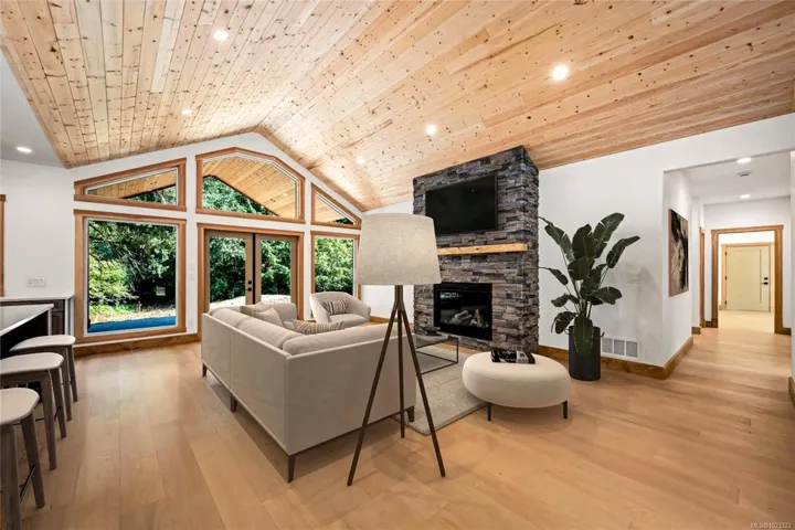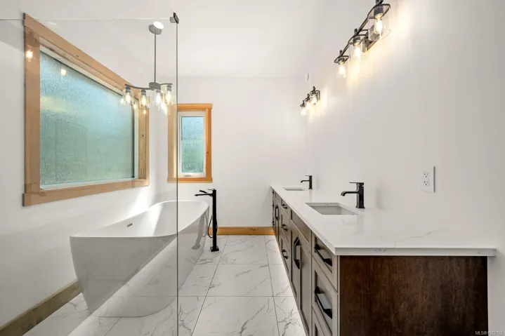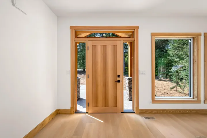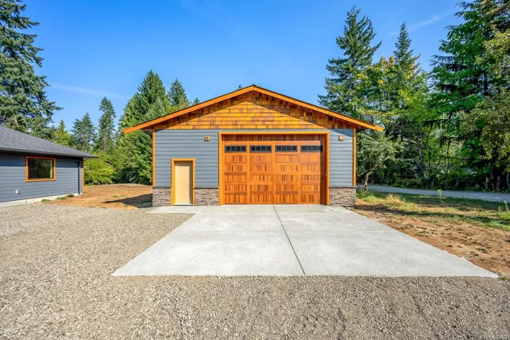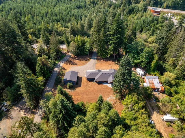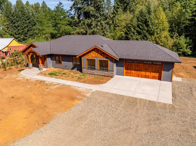 3 bedroom, 2 bath, 2310 sq ft executive rancher by Dragonfly Homes, ready for occupancy. Set on a level 2 +/- acre, private treed lot with a 1000 sq ft detached shop with over height garage doors. This high end rancher has all the west coast finishing Dragonfly homes is known for with a modern twist. Hardwood and tile floors, fir trim, hemlock doors and a huge great room with vaulted ceilings that extend through to the huge partially covered patio. Living room boasts floor to ceiling windows and a cozy fireplace. Gourmet kitchen with modern finishing, lots of cabinetry and quartz counters. Luxurious master suite has a walk in closet and ensuite with free standing soaker tub, jack and jill sinks and walk in tiled shower. Electric forced air furnace with a heat pump keeps you cool in the summer. This one level home has a covered entry way with fir timber details, hardi plank siding and detached shop so bring your toys! Seller will pay GST.