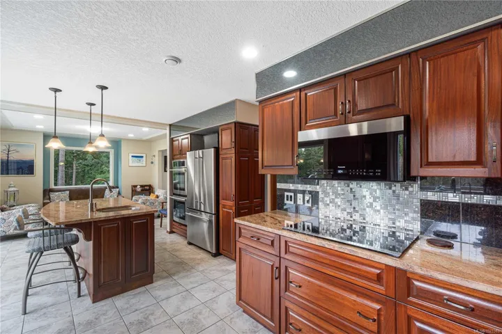 This could be the opportunity you have been looking for. An immaculate residence on almost 5 acres with hard to find privacy. There is a special feeling going down a paved drive and entering the property behind a security gate. The rich hardwood floors make a great first impression as they lead you to the updated kitchen. The large island is where friends gather and the large patio doors open to wonderful deck to enjoy the peace and quiet. A living room with fireplace and two bedrooms complete this level including a beautiful main bath. The lower level is for entertaining, with a pool table, wet bar wood stove and 2 more bedrooms. The sliding doors to a patio where the hot tub awaits. The detached almost 700′ insulated shop offers many options. Metal roof, heat pump, newer windows this home has been well maintained for your peace of mind. A wonderful opportunity not to be missed. Measurements by Proper Measure buyer to verify if important.