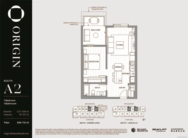 The Beachlands is a 134-acre oceanfront masterplanned community in the city of Colwood, ideal for homeowners seeking an elevated westcoast lifestyle. The Beachlands boasts nearly 50-acres of parks and trails, 1.4km of shoreline, and 7 golf courses within 20 minutes. Origin at the Beachlands is the first opportunity to own at this iconic community, and offers nearly 20,000 square feet of amenities including an expansive lobby, fitness centre with sauna, an oceanview rooftop lounge with outdoor kitchen and BBQ, a shared entertainment lounge with kitchen and dining, a co-working lounge, and courtyard with play area. Carefully considered floorplans and materials combine to create stunning homes with overheight ceilings in main living areas, central air conditioning, engineered hardwood flooring throughout, beautiful cabinetry with integrated appliances, and quartz countertops with full-height backsplash in kitchens. Secure underground parking with EV-ready stalls. Bike locker included.