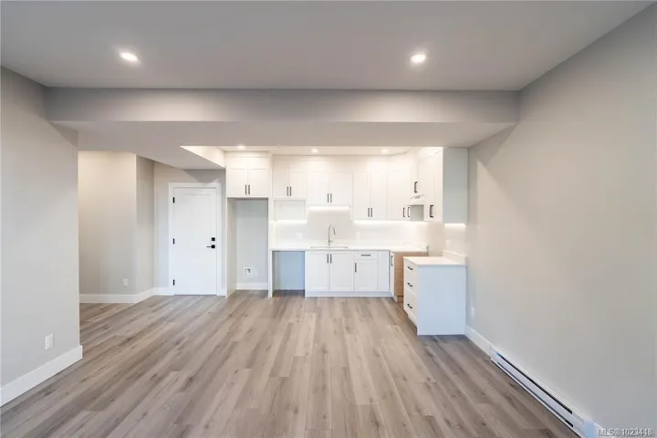 At this enchanting location discover impressive amenities & a rare 1 bed legal suite. Enjoy forest & ocean views from the primary bedroom, living room and back deck. The kitchen offers elegant white cabinetry with soft-close drawers/ doors, under-cabinet lighting, & luxurious quartz countertops & backsplash. A tray ceiling in the living room enhances the spacious feel, complemented by durable laminate flooring and stylish tile in the bathrooms. Additional highlights include 9’ ceilings, an on-demand hot water system, and a natural gas furnace with air conditioning roughed in, plus a natural gas barbeque r/i connection on the patio. The legal 1 bed suite has convenient level entry, its own hydro meter for electric