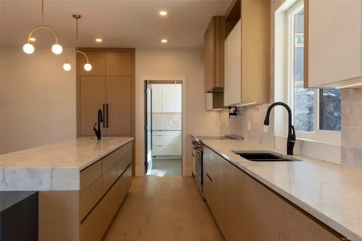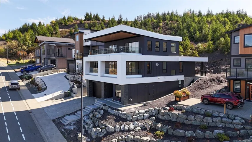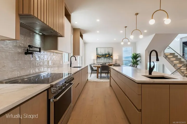 The Sky House—an executive-class residence in Kingsview—is now complete and ready for its first owners. Offering 4,000+ sq. ft. of beautifully finished living space, including a 722 sq. ft. 2-bedroom legal suite, this home blends luxury, function, and income potential. The chef’s kitchen features a walk-in butler’s pantry, waterfall quartz island, Dacor fridge, Electrolux induction range, and integrated cabinetry. It flows seamlessly to the dining and living areas, with herringbone hardwood, gas fireplace, and custom built-ins. The primary suite offers a spa-inspired 5-piece ensuite with glass shower, rain head, smart toilet, and walk-in closet. Upstairs, three bedrooms (two with walk-ins, one ensuite) surround a central lounge with access to a 12’x34’ deck and striking cantilevered roof. The lower level boasts a media/office with wet bar, heated tile floors, 3-piece bath, and garage access. With extraordinary views and refined finishes, The Sky House is a rare Kingsview opportunity.
