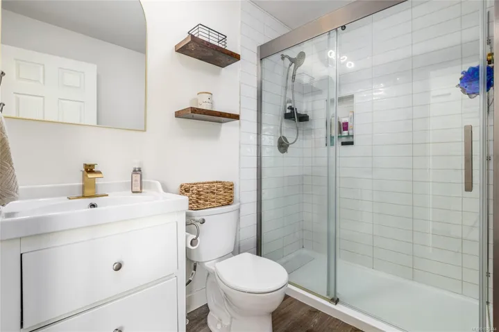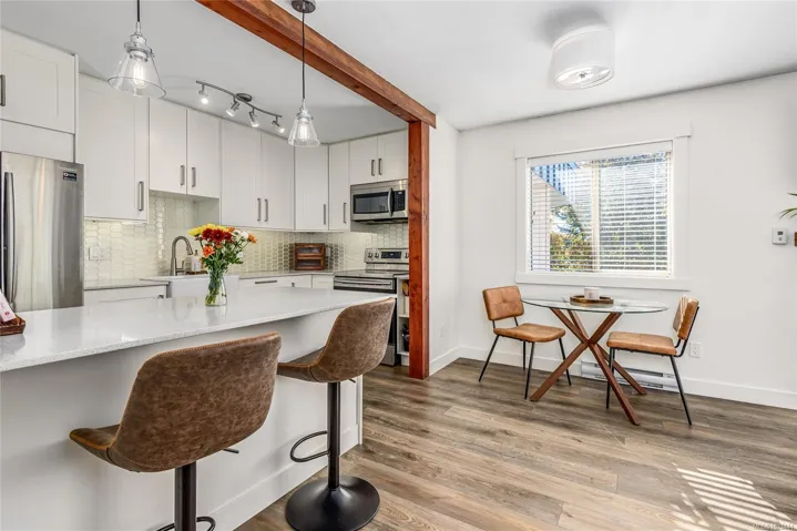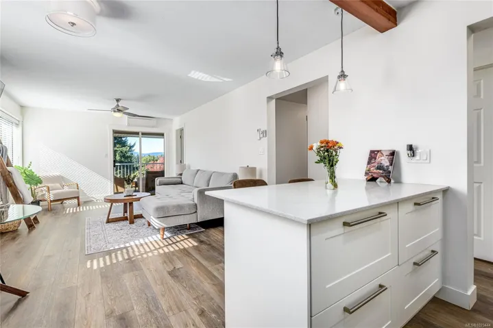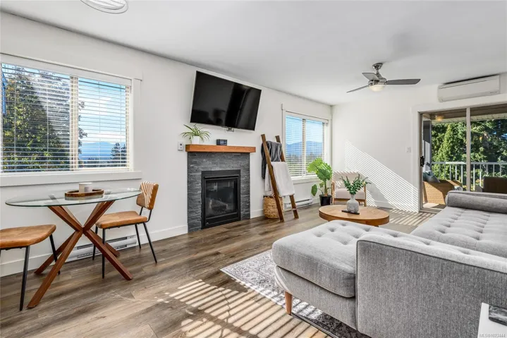 Just move in and Enjoy, not costly renovations or A/C installation needed. With a newer mini spit offering A/C in the summer and affordable heating in the winter, you’ll be cool as a cucumber in the summer and warm and cozy in the winter. Summer is coming and the balcony offers cool mountain views and a relaxing space to enjoy. This like new unit has a gorgeous white kitchen and backsplash plus hidden drawers and dishwasher accented by beautiful newer quartz countertops. The spacious primary unit includes a walk-in shower and large closet with newer flooring and blinds. No shared laundry here, enjoy your very own laundry room in the unit with included washer and dryer. Conveniently located within walking distance to the North Island Hospital on Lerwick Rd and within a few minutes drive of Costco. Pets welcome, call your agent for details.