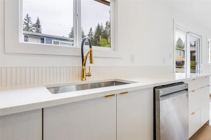 Welcome home to your beautifully renovated Mobile Home in a well established MHP. This mobile has been pretty much rebuilt with new trusses giving you vaulted ceilings which makes the home feel bigger. Gorgeous kitchen with quartz counters and center island , cabinets with brass accents and faucet, all new stainless steel appliances , big walk in shower in main bathroom and the addition of large 5 piece ensuite in the Master bedroom with double closets as well. With all new drywall through out , new luxury vinyl flooring , new plumbing , new electrical , new lighting , mini split heat pump , new windows , new decks , new metal roof , new siding , there is nothing left for you to do but to enjoy your new home. The perfect place to retire or for the snowbirds to hang their hat in beautiful Campbell River on Vancouver Island. Central location . Quick Possession is possible.