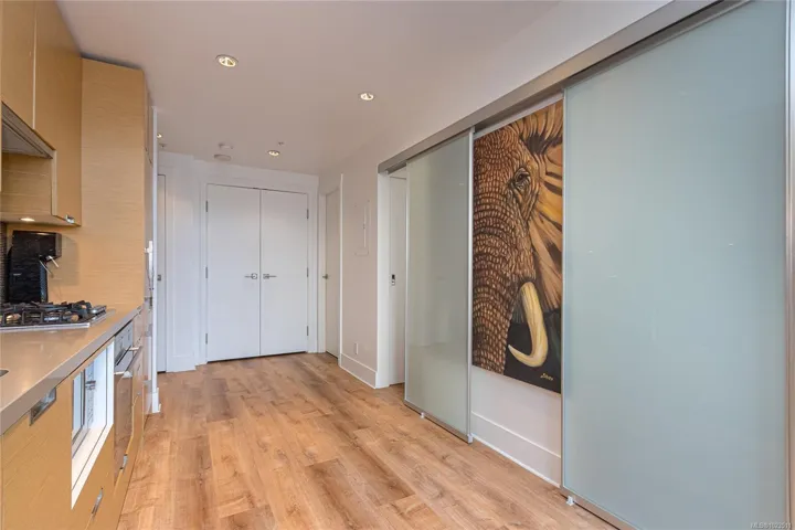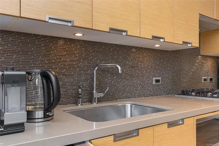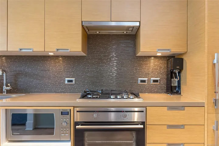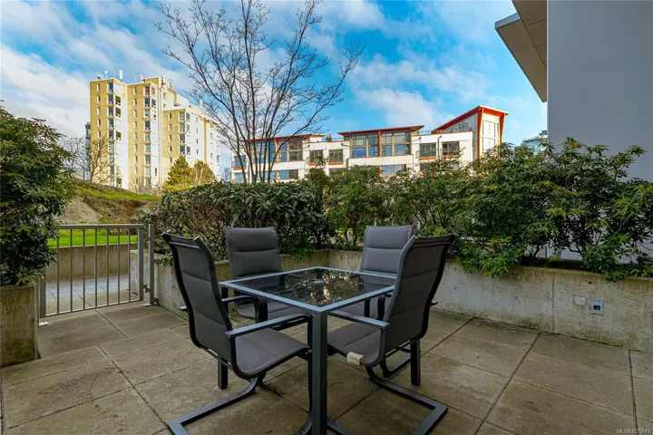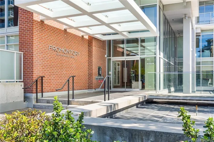 Promontory by Bosa offers this well-designed ground-floor one-bedroom home overlooking the peaceful garden courtyard. Featuring 482 sq ft of interior space and an impressive 218 sq ft private patio, this unique residence showcases floor-to-ceiling windows and seamless indoor-outdoor living—perfect for BBQs or entertaining. The sleek galley kitchen is equipped with premium Miele and Electrolux appliances within an open-concept layout ideal for first-time buyers, investors, or a stylish pied-à-terre. Exceptionally pet-friendly with allowances for two dogs and two cats (no size restrictions) and fully rentable, the building also offers concierge service, a fitness centre, secure underground parking, bike storage, air conditioning, and shared outdoor spaces. Located in vibrant Victoria West, enjoy nearby cafes, beaches, trails, the Vic West off-leash dog park, and a short 10-minute walk to downtown and the Inner Harbour.