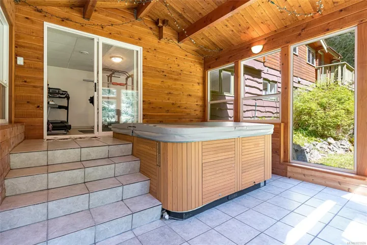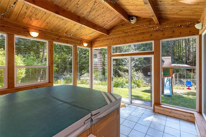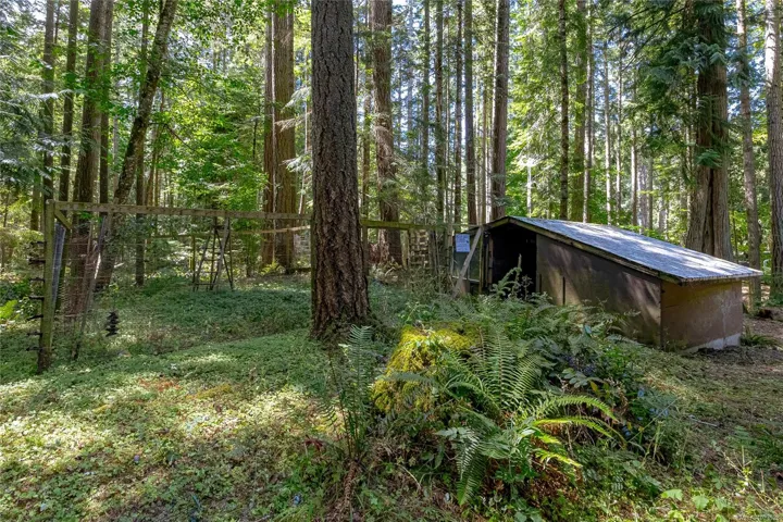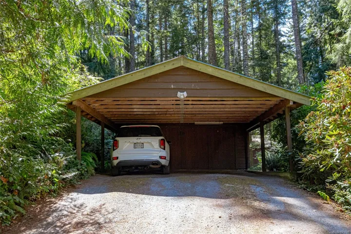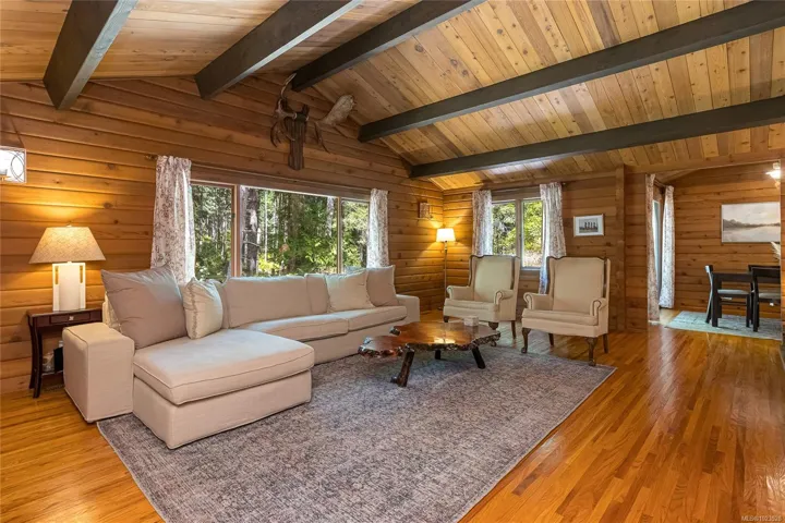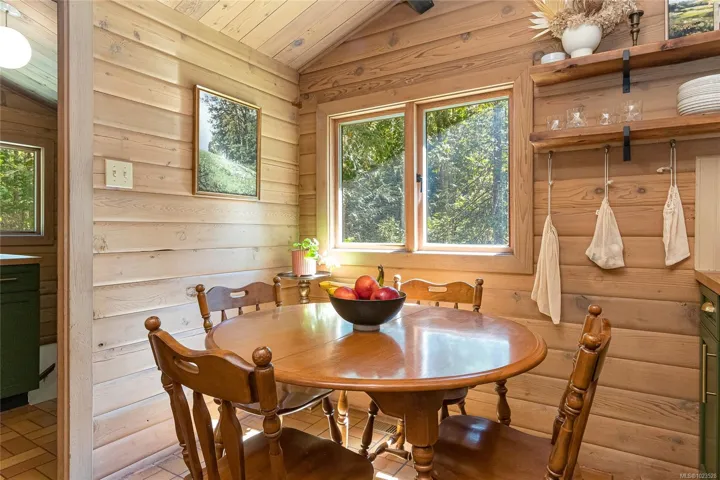Come and discover this private Metchosin retreat, on over 2 acres of forested beauty with a seasonal stream and the timeless character of a Pan-Abode style home. With 4 bedrooms and 3 baths across approx. 2,400 sqft, this inviting family residence offers wood-clad walls, vaulted ceilings, and spaces that radiate warmth and charm. Gather in the glass-enclosed hot tub room, relax on the deck surrounded by nature, or explore the grounds and outbuildings including a powered workshop, chicken coop, shed, and firewood storage. Recent upgrades, including a heat pump, 200A electrical, and generator system bring modern comfort to this West Coast sanctuary. The property backs on to a 160 acre nature preserve, providing a feeling of endless greenery. Here, mornings start with birdsong, evenings end under starlight, and every day offers the chance to slow down and connect with what matters most.