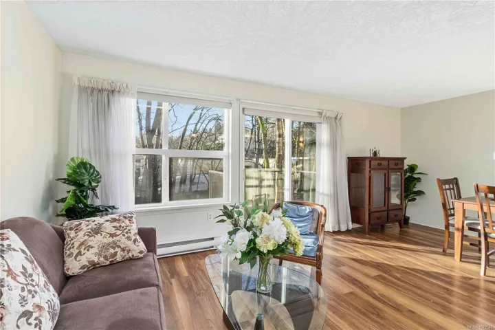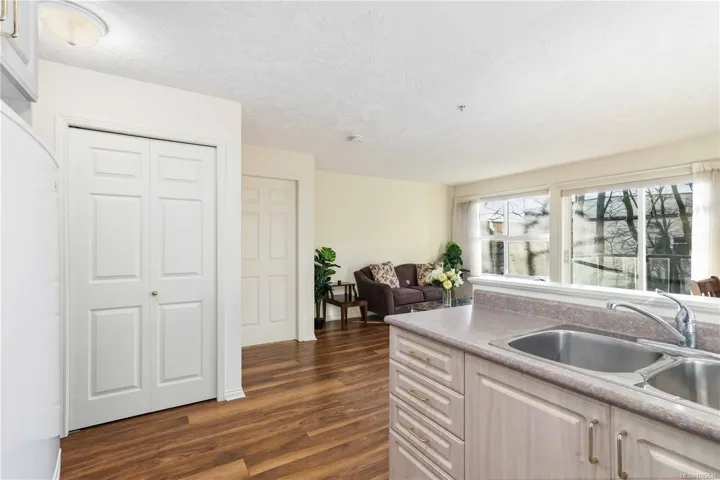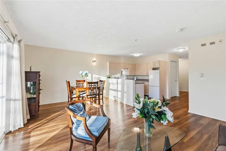 Welcome to this spacious and bright, southeast corner unit at Rose Bank Gardens. Unit 207 offers vinyl plank flooring, an open concept kitchen, living and dining area, a generous primary bedroom with walk in closet and ensuite bathroom with walk in shower and ample in-unit storage. A sliding door off the living area opens to a south facing deck overlooking a grove of oak trees. A laundry room with multiple machines is located on each floor for easy access. Rose Bank Gardens, a 55+ independent living community offers 1 meal per day, weekly cleaning & linen service, 24-hour staff, First Alert response, a lounge and dining room, activity room and guest suite. Experience connection with your community in the dining and activity rooms and the comfort of onsite staff and first alert monitoring. The beautifully landscaped property is located on a cul de sac just one block from multiple grocery stores, banks, transit and restaurants.