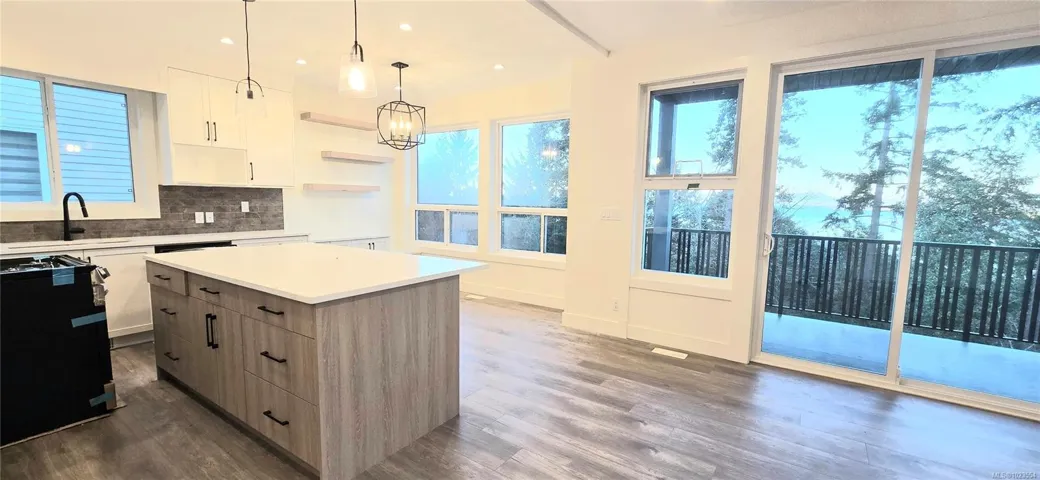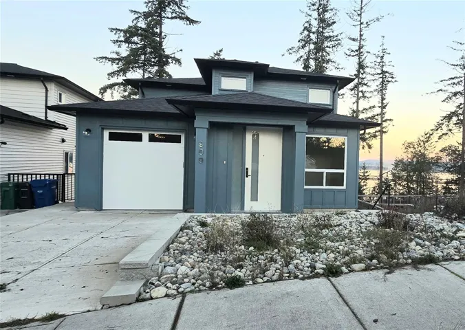 Enjoy dynamic ocean views of Coastal Mountains, ferries, & seasonal cruise ships from your main floor balcony & master bedroom balcony in this beautiful brand-new ready to move in home. Designed for modern family living, this 5-bedroom, 5-bathroom residence features a bright open layout with electric fireplace, quartz countertops, beautiful backsplash, sleek vinyl flooring, & stylish modern lighting throughout. Main level offers a spacious kitchen, dining area, family room, & a convenient full bathroom. Upstairs are 3 generous bedrooms, including a luxurious primary suite & 2nd full bathroom. A dedicated media room adds extra versatility for entertainment or relaxation with a bar & 2 pc bathroom for convenience plus a 2-bedroom suite-ready space with a full bath, ideal for extra income or extended family. Perfect for busy families seeking a low-maintenance, contemporary home with incredible views. GST is applicable; all measurements are approximate & should be verified if important.