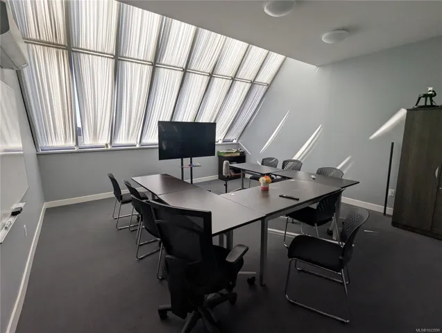 Turnkey office unit for lease in the Pyramid building. The building is prominently located on the corner of Douglas and Cloverdale, with excellent pylon signage opportunity, on-site secure parking and a transit directly in front. Unit 304 has two large offices, boardroom, server room, open work area, private patio and kitchenette.