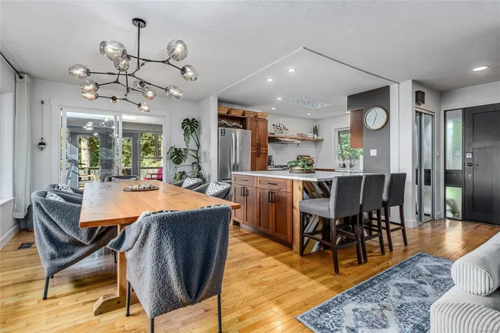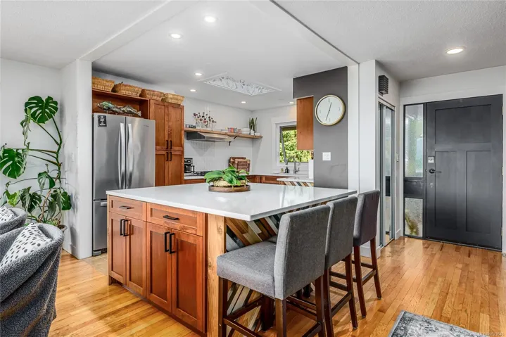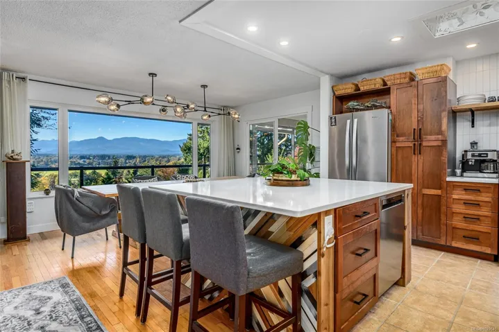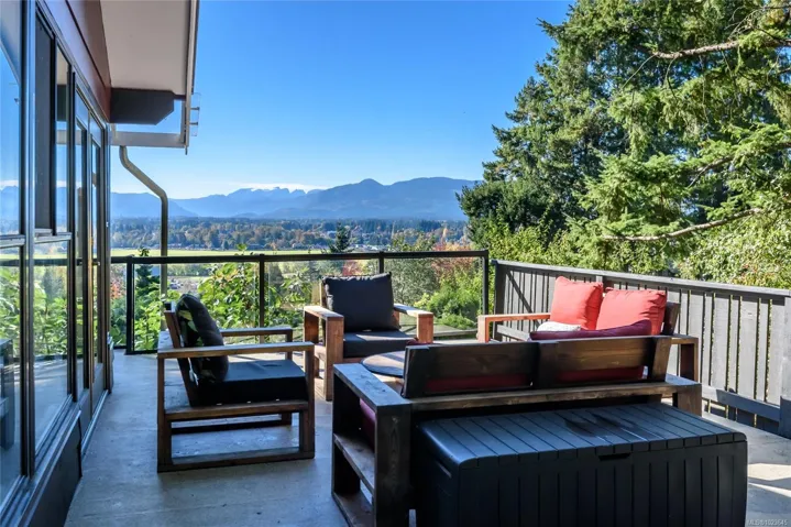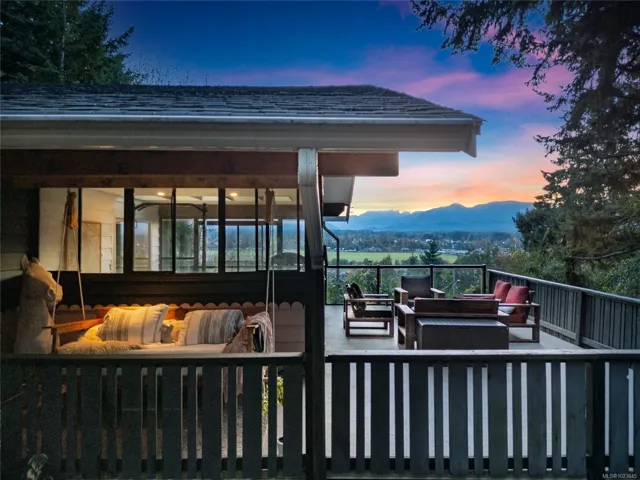 Stunning View Home! Renovated 4 bdrm/3 bath family home offering 2808 sf with impressive mountain, city, glacier & valley VIEWS in sought-after Courtenay East neighbourhood. The glorious .45 acre lot is professionally landscaped featuring drought free & native plants, there’s unbelievable privacy & relaxing outdoor spaces. Main floor features an open plan, high ceilings, kitchen with centre island, quartz countertops, 2 dishwashers, family size dining area, living room with gas fireplace, primary bdrm with full ensuite. Amazing sunroom, manual awnings, large sundeck with access to front & backyard. Downstairs offers cozy family room, incredible rec room, laundry, 4th bdrm, full bathroom, fantastic mudroom & 2 gas fireplaces. Newer furnace/heat pump 2021, vinyl windows, roof 2018, sizable single garage, ample paved parking, breezeway, outdoor shower, fenced backyard & additional secondary parking & access to backyard. Book a showing to see how special this property truly is!