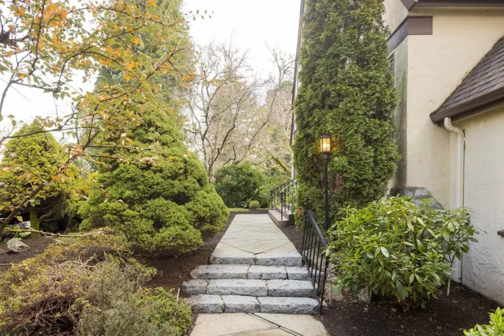 Set on a quiet, tree-lined curve in the heart of the Uplands, this classic Tudor offers timeless architecture, exceptional privacy, and a rare sense of calm. The home blends storybook charm with light-filled interiors and thoughtful updates that respect its original character. Warm hardwood floors and generous principal rooms create an inviting atmosphere for everyday living and entertaining. The living and dining areas flow naturally, anchored by traditional fireplaces and large windows that fill the home with soft natural light. Upstairs features peaceful, well-proportioned bedrooms, including a spacious primary ideal for family, guests, or a home office. The lower level includes a comfortable rec room, and benefits from a separate exterior entrance. Outdoors, the southwest-facing backyard enjoys wonderful afternoon and evening sun providing privacy and tranquility. A true Uplands classic, offering architectural beauty, functional living space, and enduring appeal.