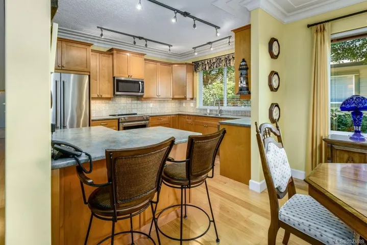 Your new home at Crystal Shores awaits! This private and quiet executive patio home is steps from the scenic Courtenay River Walkway and the Comox Harbour. Enjoy the ease of single-level living with an attached garage and a thoughtfully designed layout featuring 2 spacious bedrooms, 2 bathrooms, and an enclosed flex room-perfect for a home office, studio, or guest space. The bright, open-concept interior offers in-floor radiant heating and 9ft ceilings with crown moldings. Your private patio that backs into the walking trail with views of Comox Harbour inlet. The open kitchen features Stainless Steel appliances, Tile Backsplash and under cabinet lighting. The primary bedroom suite offers a relaxing retreat with a large walk-in closet and an ensuite that boasting a soaker tub and a walk-in shower. Enjoy immediate access to walking and cycling trails, nearby shops and restaurants, and a lifestyle rich in outdoor recreation with skiing, golf, and marinas just minutes away.