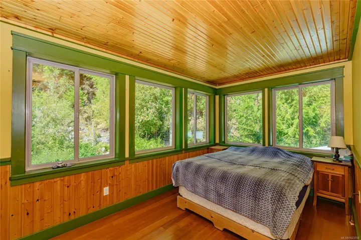 NEW PRICE! PRIVATE sanctuary on more than 3 1/2 acres. This craftsman built and well maintained home provides a rare opportunity for seclusion that is just 20 minutes from town. The home is ideally sited-embraced by a rocky knoll which is a natural heat sink that creates a micro climate for fenced high yield garden. The southern exposure welcomes abundant sunshine. The vaulted skylights & numerous windows create an air of spaciousness that exceeds the sustainable footprint. The lot contains a mature forest with tall Fir, Cedar, Maple & gorgeous Arbutus. Fruit tree plantings include fig, two purple plum trees, three apple trees [Transparent, Cox Pippin, Northern Spy] also blueberry bushes, lilac tree & fire red rhododendron.There are additional flat areas for a legal cottage and storage and there is a large shed. Delicious water from productive well. The forested portion of the land provides a lifetime supply of firewood. Quality Milgard windows [2012]. Lower workshop 200 Amp service