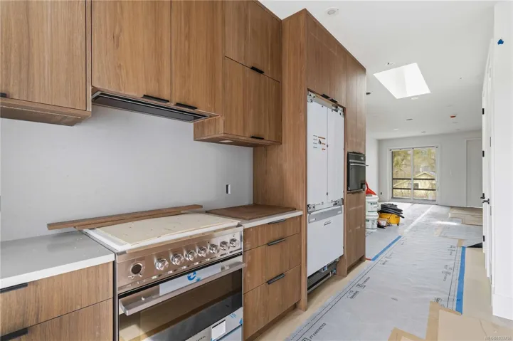 Discover Four on Brooke, an Exclusive Collection of Scandinavian-Inspired, Single-Level Townhomes nestled in the highly coveted Fairfield–Gonzales neighbourhood. This TOP FLOOR home is truly special with Skylights, Southern exposure + 2 decks to relax on. These residences elevate urban living with boutique scale and an unbeatable location, overlooking Brooke Street Park. 3-bed, 2-bath homes blend minimalist design with luxury finishes—engineered Hardwood, Over Sized Doors, Colorado Gold quartz counters, spa-like bathrooms, and chef-inspired kitchens. Enjoy private outdoor space, secured in-ground parking, bike storage, EV-ready charging and individual heat pumps for heating/cooling. Quality built, one level, created as unique active lifestyle homes and built by award winning Jesse Baidwan Developments. Superior finishing and sound resilience are a priority with the construction using Sonopan technology to minimize sound transfer. Estimated completion mid 2026.