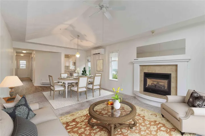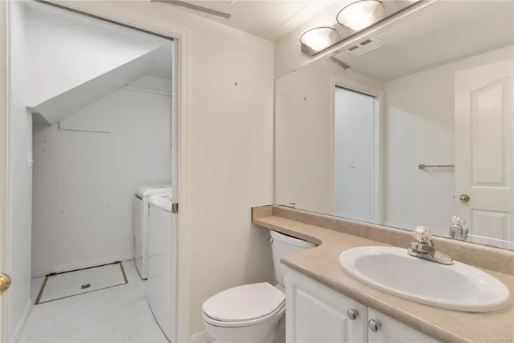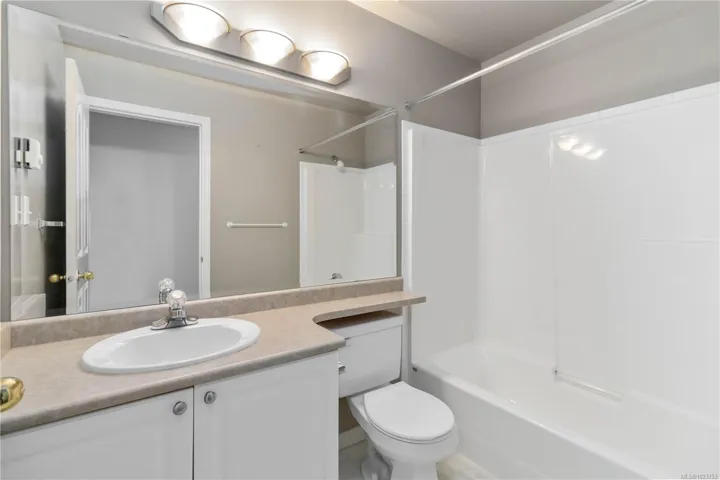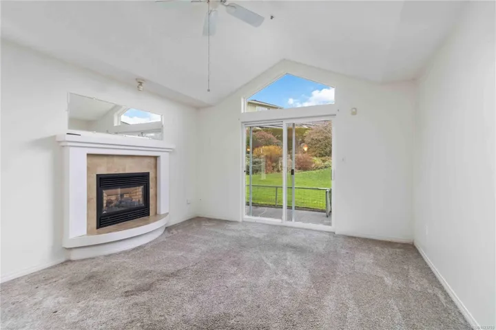 OH – Sat 11:45-1:00. HD Photos, Video & Floorplans Online! Rare opportunity to own this well-designed 3BD 3 BTH end-unit townhouse backing onto peaceful green space. Perfect for families, retirees, or anyone needing accessible living, this thoughtfully laid out home w/no-step main level living has an abundance of natural lighting, offering vaulted ceilings, cozy gas FP in the living room, dining, spacious Primary bdrm w/ensuite, full bath, laundry, 2nd bdrm, plus direct patio access—ideal for BBQs & relaxing. Upstairs offers a private 3rd bdrm w/ocean views & its own private full bath. Stay comfortable year-round w/a heat pump & bonus w/crawlspace, garage, & serene outlook. Pet-friendly: 1 dog & 1 cat allowed – no size restrictions. Steps to Admirals Walk – Thrifty Foods, Canadian Tire, E&N Trail, paddle at Thetis Cove, stroll Portage Park & Gorge Waterway. Strata plan finished 1372sqft – total sqft 1599, Floor plan 1425sqft finished – total sqft1855.Quick possession is possible.