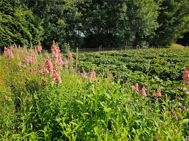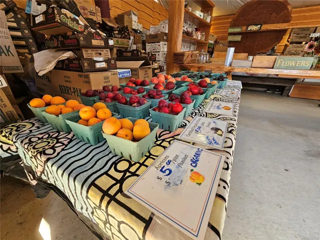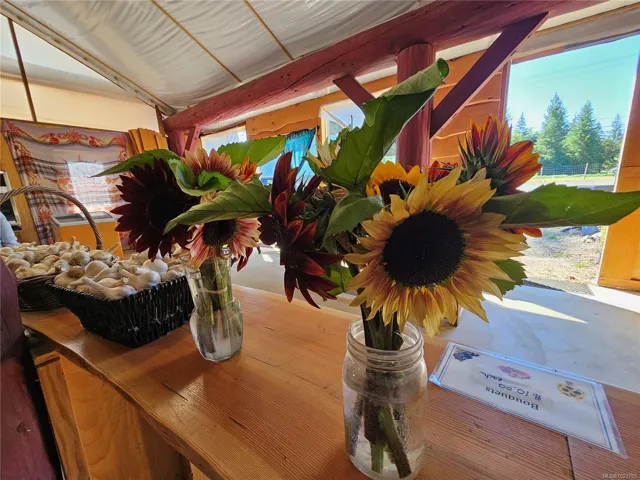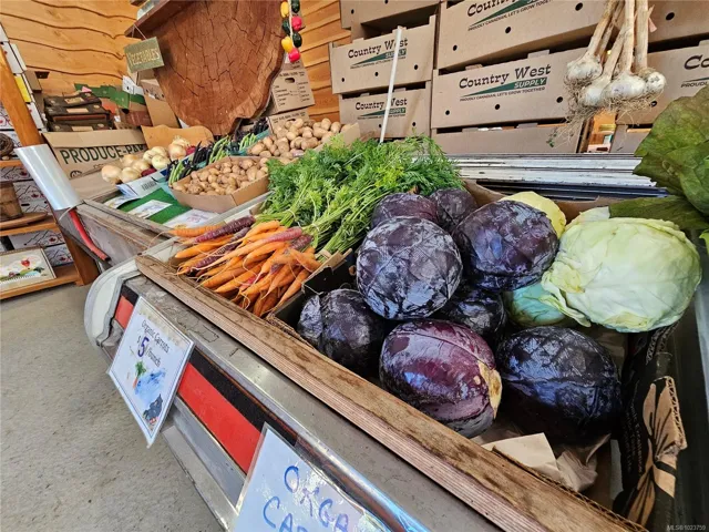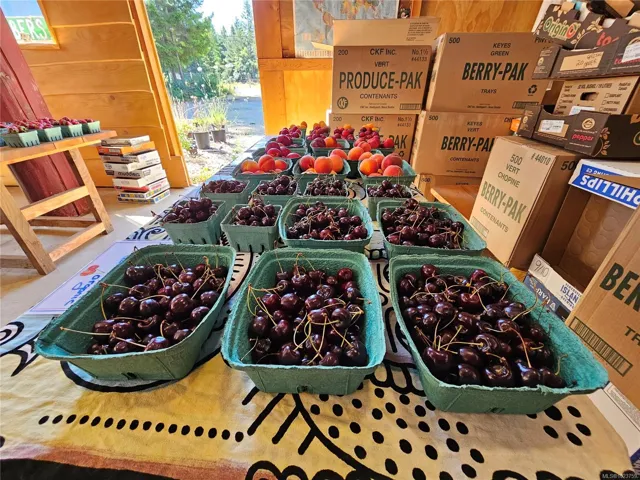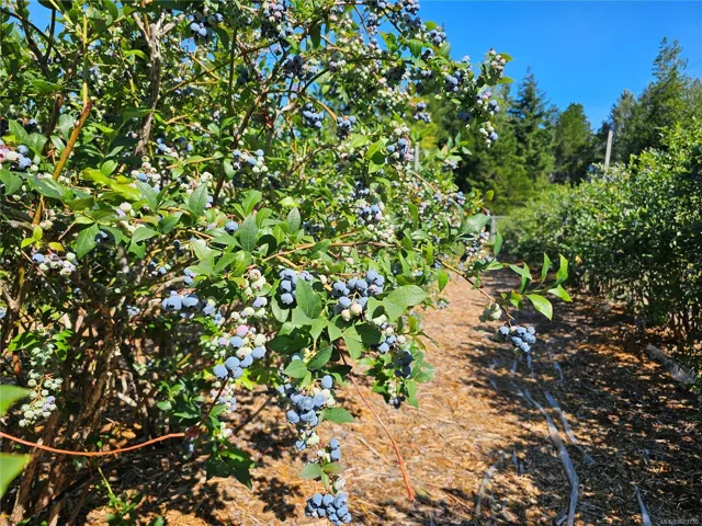 17.23-acre rural investment opportunity in North Courtenay with established agri-business infrastructure and income potential. Approximately one acre is in production with blueberries, cherries, strawberries, vegetables, and cut flowers, supported by a roadside farm stand. Outbuildings include greenhouses, workshop, studio, storage buildings, 2 walk-in coolers, and kiosk, supporting continued or expanded agricultural use. Three separate 200-amp electrical services provide excellent capacity for business operations. Additional dwellings include a second residence with its own well and septic, an unfinished 1-bed tiny home, and an unfinished guesthouse with bathroom—ideal for staff housing, rental income, or multigenerational living. The custom 5-bed, 4-bath main home offers comfortable owner-operator living with a main-level primary bedroom, heat pump, woodstove, and chef-inspired kitchen. Private setting backing onto a creek, minutes to Courtenay amenities, airport, parks, and beaches.