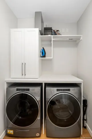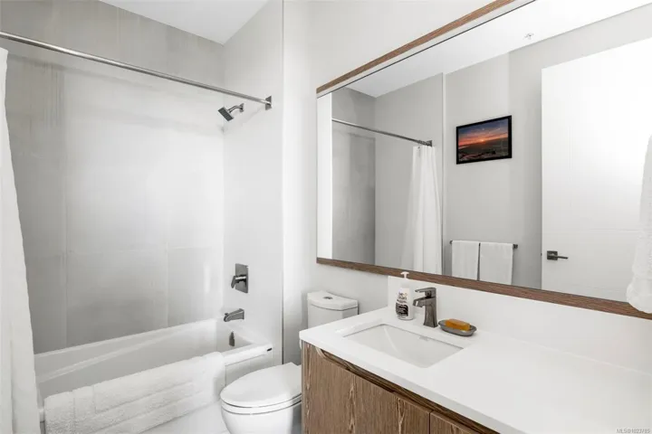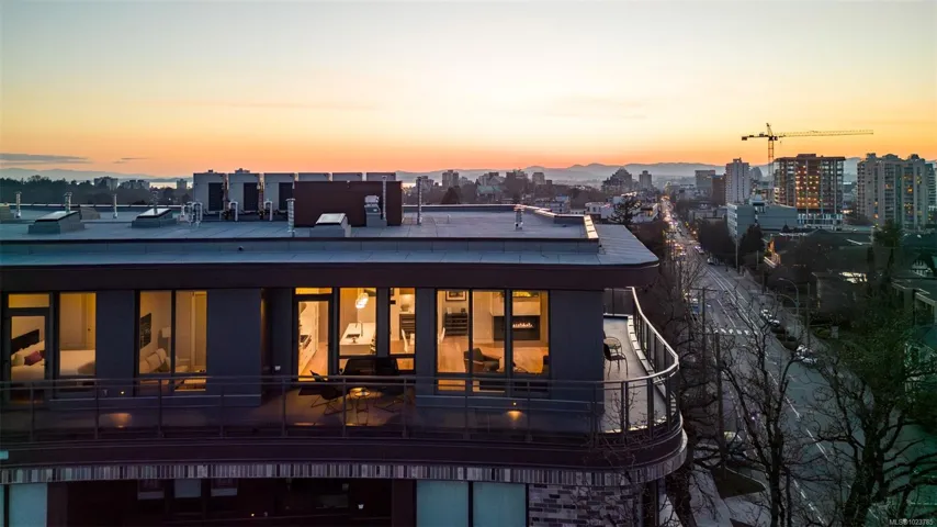Welcome, YOUR new penthouse at Bellewood Park awaits! You’ll enjoy views of the city and mountains from this exclusive 2 bedroom, 3 bathroom+ den home. The kitchen is loaded with top-of-the-line appliances: Wolf gas cooktop, double wall oven, double Blomberg refrigerator, and a Fisher & Paykel double-drawer dishwasher. For the wine enthusiast, a wine fridge is conveniently built-into you mini bar zone. Every detail in this penthouse has been meticulously curated: electric blinds, heated bathroom floors, providing warmth and comfort. The built-in outdoor patio heater allows you to enjoy the the beautiful views year-round, while the gas fireplace adds a cozy touch indoors. 10’8″ ceilings and customized lighting throughout, the space feels open and inviting. Parking is a breeze with your Private 2-car garage and and additional 3rd parking with an EV charger, perfect for eco-conscious homeowners. All within minutes of downtown, Dallas Rd, Cook St village and more!