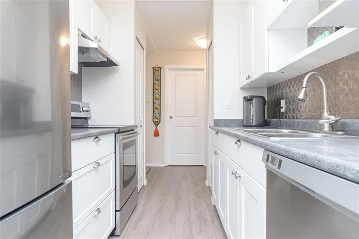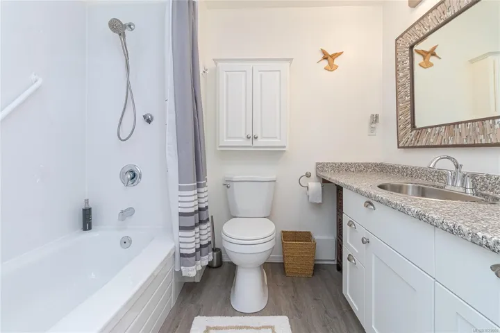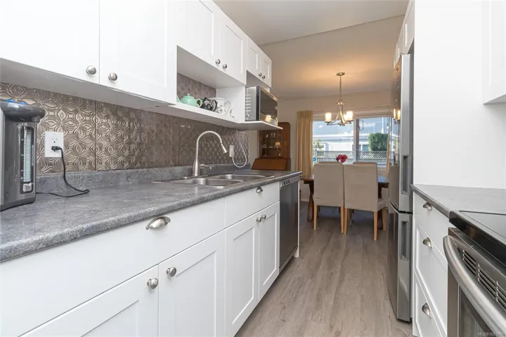 SIDNEY BY THE SEA! Seldom do these homes become available at the desirable CHARTHOUSE. Welcome to this BRIGHT, SOUTHWEST sundrenched CORNER 2 BD/2 BA, 1027sf ground floor condo. Galley style kitchen with white cabinets & double sink, separate dining/eating area, and a spacious living room with electric fireplace feature is perfect for entertaining! Enjoy easy access to your walk-out patio surrounded by the beautiful gardens and lawn – perfect for your small dog too! In-suite NEW washer/dryer and 1 parking spot complete this amazing opportunity to own your home in one of Victoria’s best kept secrets! This professionally managed building has been fully remediated in 2008, including rain-screen technology, new hardy plank siding, roof, vinyl thermal windows with screen & patio sliding door.This is a fantastic home!The spacious primary bedroom includes an ensuite & walk-in closet.