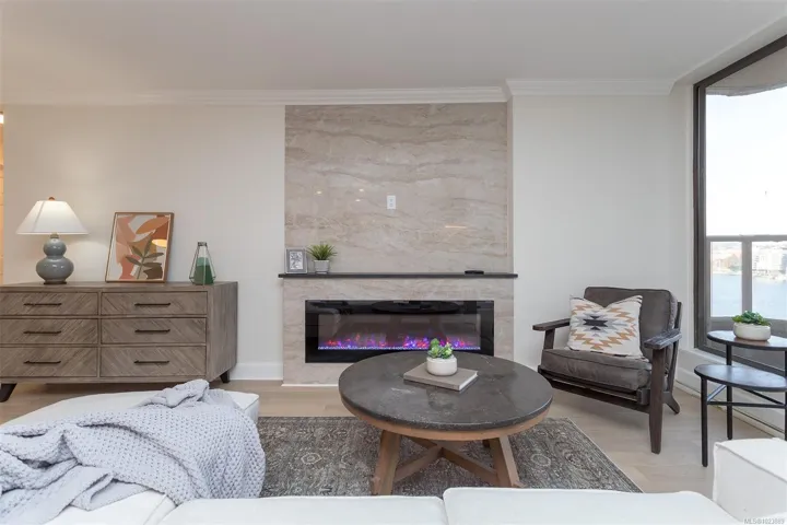 Come and discover this absolutely stunning 8th floor 2-Bedroom, 2-Bath condo with some of the most incredible views of the magical Victoria Inner Harbour, marina’s, and city including the historic Empress Hotel. This large 1200 sf home has been completely transformed into a modern and sophisticated residence so you can just move in and enjoy. You will love the brand new wood grained chefs kitchen featuring quartz counters, 5 person eating bar, new Stainless Steel appliances, and under-counter lighting. Very open design allows beautiful views from all principal rooms including both over-sized bedrooms. All new flooring including top quality laminate, new bathrooms, new fixtures, new feature fireplace, and all redecorated. Laurel point offers a gym, rec room, pool, library, and underground secure parking. This location is second to none – steps into the Inner Harbour, Fisherman’s Wharf, restaurants, and shopping. You deserve this so come and view today.