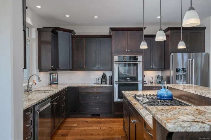 Views! This custom built 2011 home has a wrap around porch that let you take in the water/ mountain views. Inside you will find and open concept kitchen, dining and living area with a cozy fireplace and a full bath and bedroom on the main floor. Walking up the oversized staircase takes you to the Primary bedroom with even better views! complete with large full ensuite and walkin closet. There is also another storage room that could be an additional bedroom. Downstairs has a rec room with wet bar, bathroom, bedroom and sauna. enjoy your easy care back yard in the hottub with views, back patio area and large detached garage. Almost all appliances have been replaced in the last year. This home has hot water on demand and a heat pump for those hot summer days.