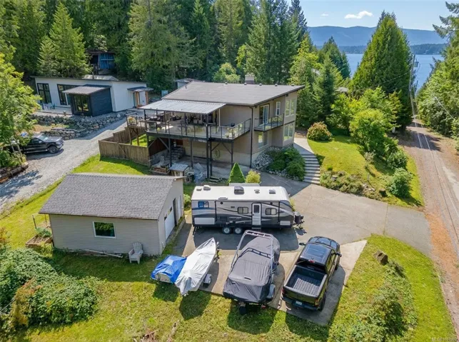 SPROAT LAKE LIVING- This amazing 4-bed, 3-bath home is a short walk away from the gorgeous Sproat Lake . The main floor offers a spacious family room with pellet stove, a workout area, laundry room, 3-piece bathroom and bedroom. Upstairs offers a grand open concept living/kitchen/dining area again with a pellet stove for those cold winter days. The kitchen offers custom cabinets, new stainless steel appliances, and access to a partially covered deck perfect for entertaining friends on the hot summer days. The rest of the upstairs floor features two more bedrooms, an updated 4-piece main bathroom, and a primary bedroom with a 3-piece ensuite and its own private deck. Some of the many new features include new windows and sliding glass doors, heat pump system,, newer siding, soffit and gutters. There is also room for RV parking, as well as a separate detached shop with 220 service . With lake access, and a dock a short 1 minute stroll away, this could be your perfect vacation home!!