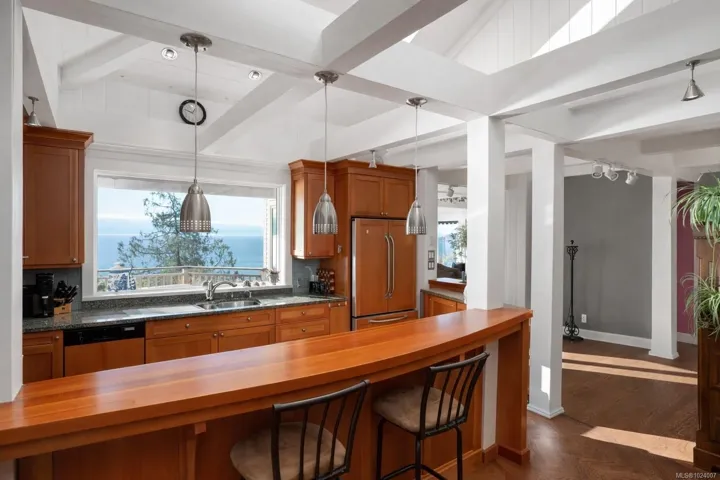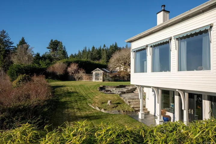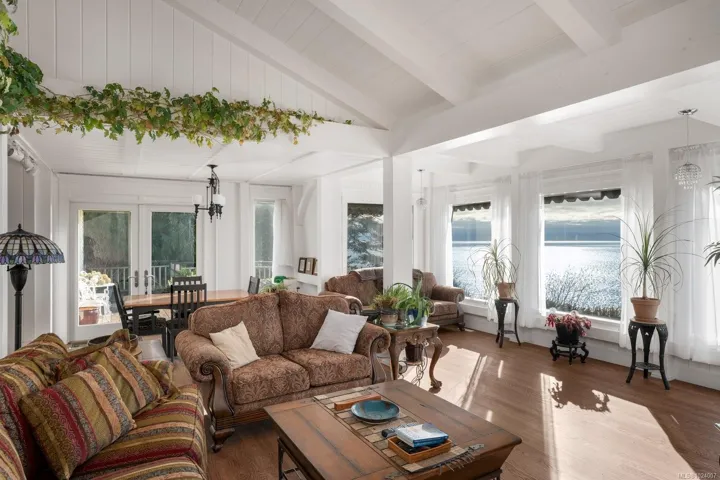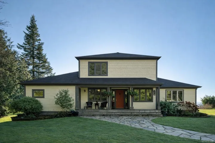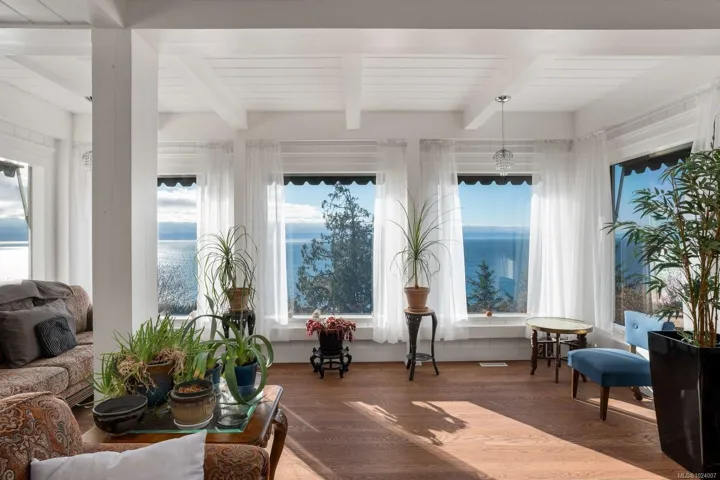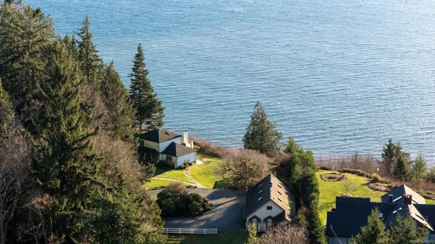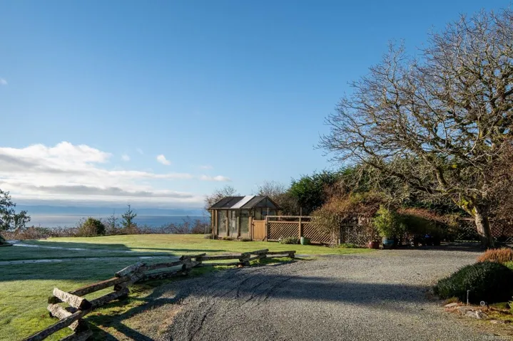 Perched above the ocean & just minutes beyond the vibrant seaside community of Sooke, this extraordinary waterfront acreage offers unobstructed views & a lifestyle deeply connected to nature. Watch the sun rise over open water & set behind the Olympic Mountains, creating a breathtaking daily panorama that never grows old. Set on 8 private, flat acres, the property blends rural tranquillity with endless opportunity. A winding driveway & mature landscaping set the tone, & a sense of calm settles in the moment you arrive. Equestrian enthusiasts will appreciate the barn, riding ring, & space to roam, train & ride at home. The timber-framed residence feels warm & grounded, featuring vaulted ceilings, wood floors, & a living room anchored by floor-to-ceiling windows that frame the ocean views. With 2 primary bdrms & a full lower level offering excellent potential for guests,family,or suite, this is a rare offering that delivers privacy, freedom, space for horses & the ocean at your doorstep.