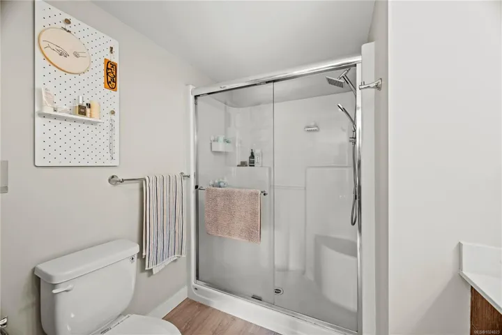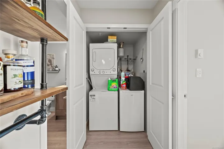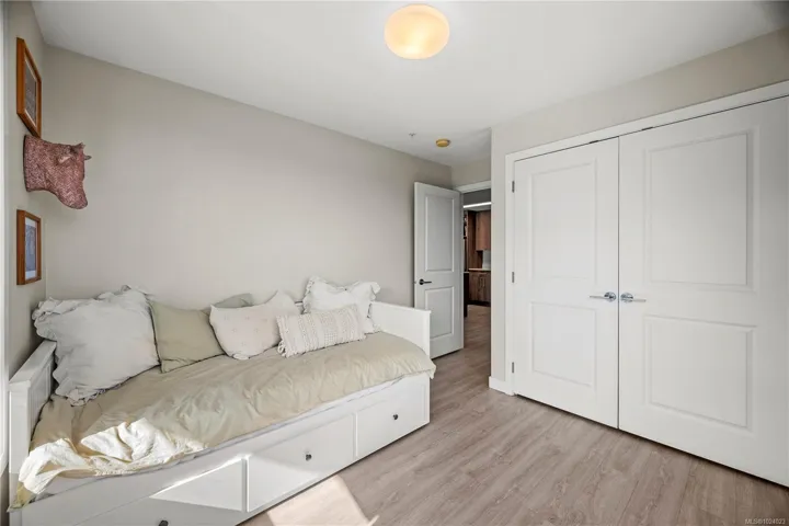 Bright and spacious 2 bed, 2 bath condo just steps from Thetis Lake and some of the best trails and recreation on the island! This 950+ sq.ft. home features a functional split-bedroom layout and south-facing exposure for tons of natural light. The large kitchen includes quartz counters, stainless steel appliances, and ample workspace. The living room opens to a generous, private balcony — no neighbours beside or across — perfect for relaxing or BBQing. The primary bedroom features a walk-through closet and ensuite, with the second bedroom and bath on the opposite side. Includes a large storage room across the hall, 1 parking stall, and lots of visitor parking. Only 9 units in the building with just two other owners on your floor and storage lockers across the hall! On the Galloping Goose and E&N bike paths and walking distance to The Nest Café and Six Mile Pub. Building amenities include bike/kayak storage and a fenced dog run. Pet-friendly with no size restrictions!