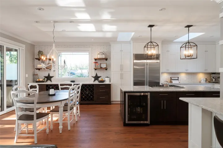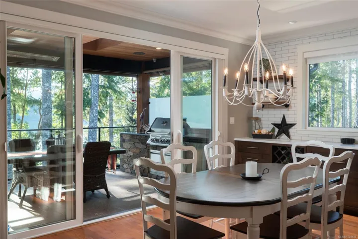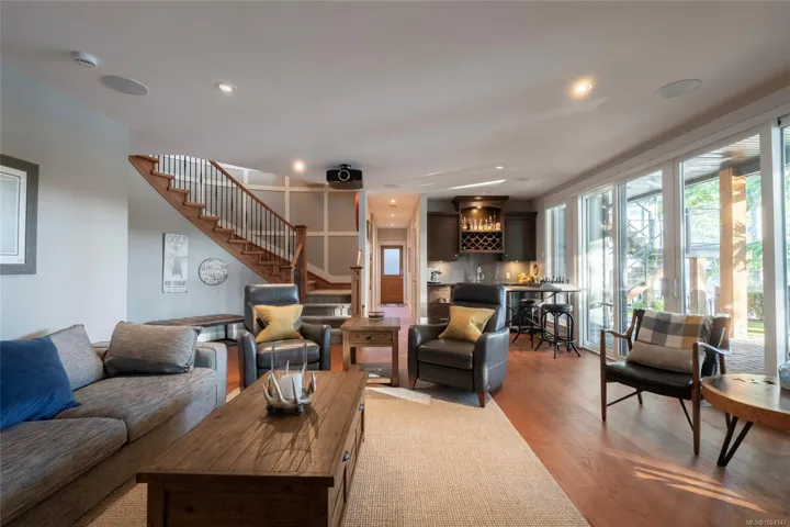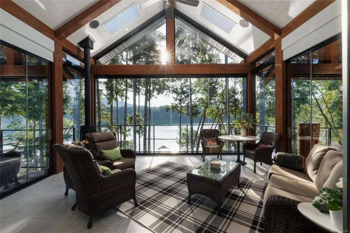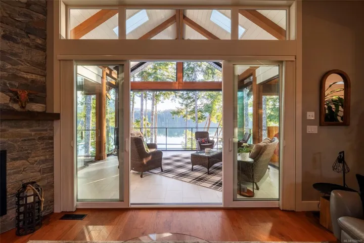Walk-on waterfront, on approx ½ acre lot featuring 4+1 bedrms, 4 baths, main-floor primary bdrm. Residential elevator, regional water/sewer, 3-car garage w/ epoxy floors, EV, RV parking, dock w/ gazebo, 50’ gangway & 50’ walkway, beach w/ gradual walk-in access, log boom. Fully fenced, lower-level outdoor entertainment bar, infinity edge hot tub & outdoor shower, outdoor kitchen w/ granite counters, fridge & Napoleon gas BBQ. Deck w/ heaters, roller screens, metal roof, hickory hardwood floors, curved stairwell w/ iron railings, 2 stone fireplaces, 12 skylights, full wet bar, 110” projection screen. Kitchen w/ stone counters, loads of cabinets, oversized island, Sub-Zero refrigerator, full Wolf appliance package. Heat pump, HRV, central vac, irrigation, Sonos audio, HD security cameras, alarm, LED landscape lights, Control4 wiring. All-season sunroom w/ Jøtul 3-sided gas fireplace, Lumen retractable glass system, generator(All info/data believed to be accurate. Verify if fundamental)