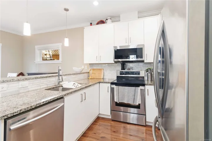 Bonuses include, electric fireplace, built in speaker system, brand new micro/oven hood fan, geothermal, dog run and shed. Enjoy outdoor living in the private and low maintenance yard—ideal for kids, pets, BBQ’s and entertaining.