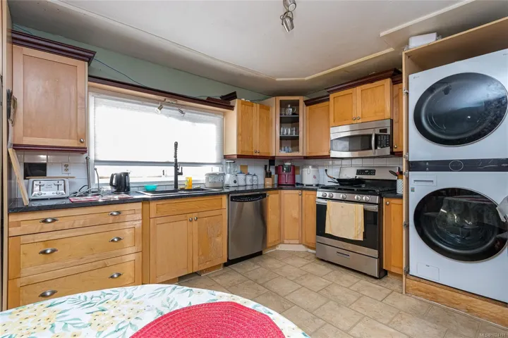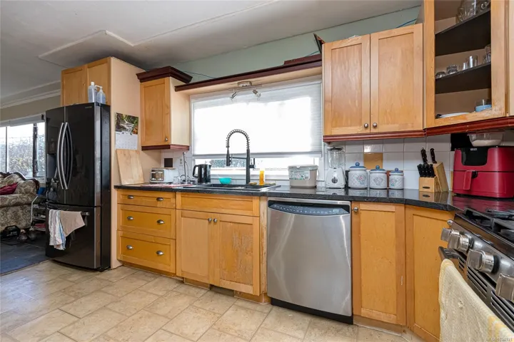 Located in the heart of Langford on a quiet street, this 4BR rancher with 2 baths plus a 1-bedroom in-law suite sits on a generous 7,800 sq. ft. lot. The main home features a spacious living and dining area, along with a primary bedroom that includes a walk-in closet. The kitchen offers a gas cooktop, and the home is equipped with a gas boiler providing heated floors, a gas hot water tank, and a cozy wood stove. The in-law suite adds excellent flexibility, complete with a stainless 4-burner gas cooktop, refrigerator, wall-mounted TV, and its own 3-piece bathroom with a standing shower—ideal for extended family or rental income. There is a large deck, a sunny rear yard, and additional outdoor space to enjoy. As a future bonus, this property may offer potential for land assembly, creating added long-term redevelopment opportunities. Zoning in the area supports the possibility of a 6-storey building, offering strong future development potential if desired—buyer to verify. Call Now