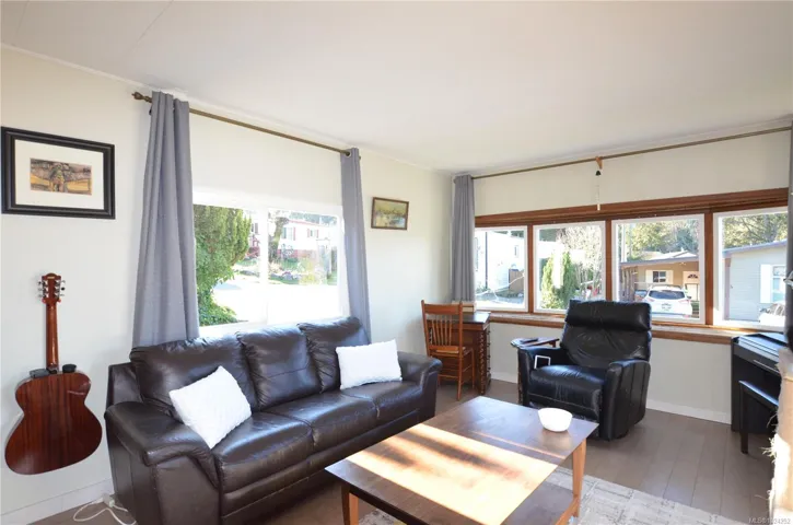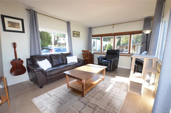 Beautifully updated 2 bedroom, 1 bathroom home located in the desirable 55+ Lambourn Mobile Home Park, just minutes from Cowichan Bay and Mill Bay. This bright and inviting home features a great floorplan with bedrooms at the rear for privacy and main living spaces at the front to enjoy the views. The front of the home is filled with natural light, with most windows being upgraded. Incredible ocean views from the sitting room, living room, kitchen, and front deck.