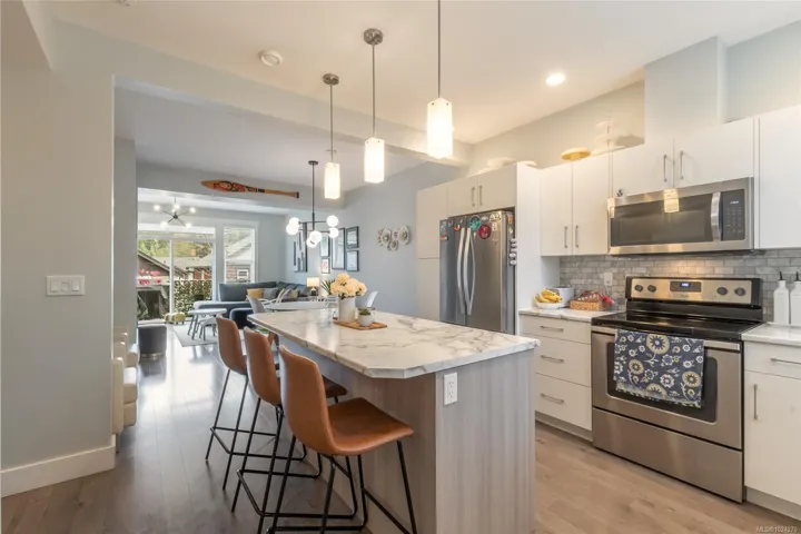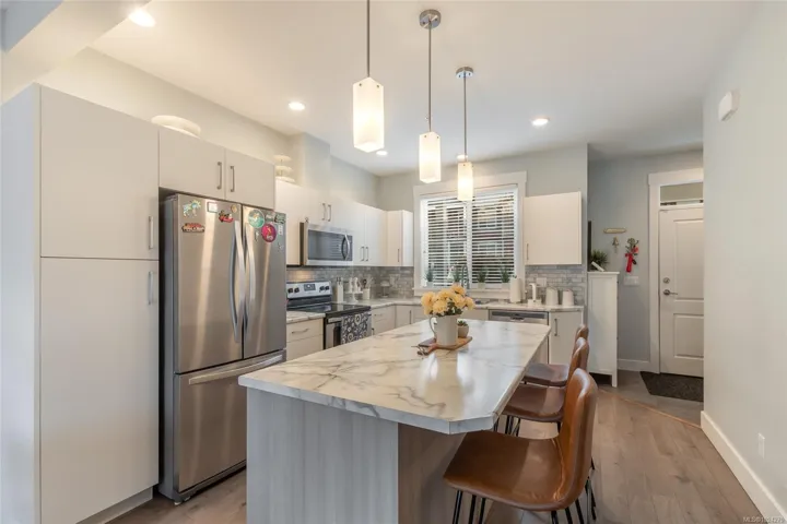 Beautiful family sized home in a quiet popular neighbourhood “Meadow Woods!” Full 3 bed/ 4 bath featuring over 2000 sqft of immaculate versatile and well laid out space. Upper floor features 2 primary bedrooms each with their own ensuite! Main floor is bright and open in this end unit and offers 9 ft ceilings, spacious kitchen with large island, dining area and large living room with fireplace and seamless entry to your great deck. Lower level ideal for guests or family member wanting own space with bedroom, family room with fireplace, full bathroom and own patio. Close to rec fields, disc golf, back country, hiking and schools only minutes away. What an opportunity for move in condition newer home that can cover all your needs.