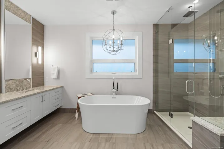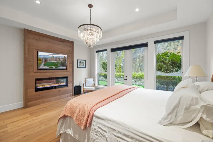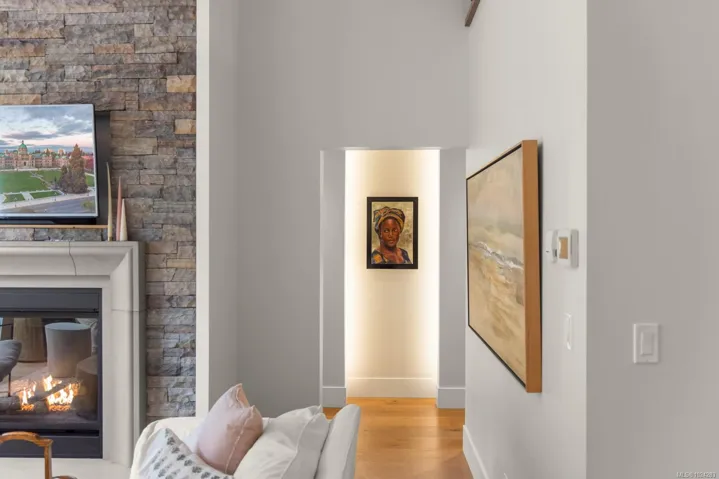 OPEN HOUSE Sun 3-4pm April 5th…..Custom built by New West Developments, this exceptional home showcases refined design and superior craftsmanship. An oversized pivot door opens to a spacious entry and open-concept living, dining, and kitchen finished with white oak engineered hardwood. The chef’s kitchen offers quartz countertops, stainless steel appliances, wine fridge, abundant cabinetry, hot water on demand, and a concealed pantry behind a custom wine rack. The main-level primary suite features French doors to the private rear yard, walk-in closet, modern concrete fireplace, and spa-inspired ensuite with freestanding tub, rainfall shower, and heated floors. A generous main-floor den with custom French doors is ideal for a home office. Upstairs includes two bedrooms, a full bath, and a bonus loft overlooking the main living area. The private backyard is an entertainer’s retreat with dual water features, flagstone courtyard, irrigation & curated lighting