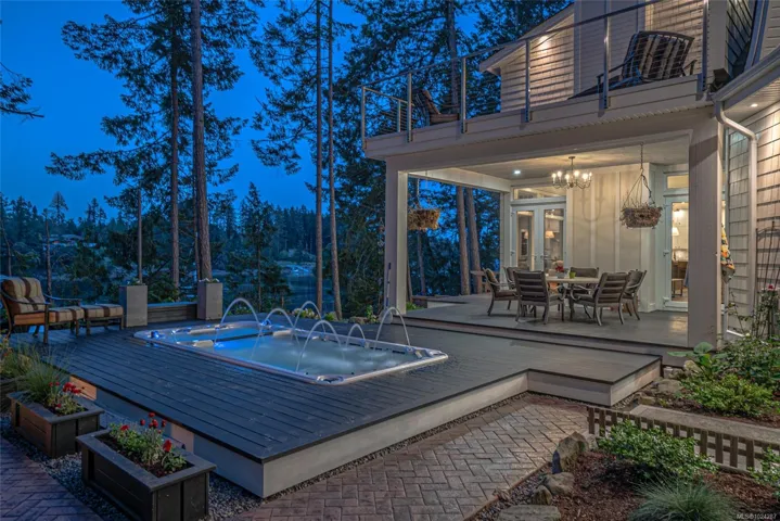 Welcome to a truly exceptional coastal retreat, where luxury, craftsmanship, & lifestyle come together seamlessly. 10 minutes from airport & 25 minutes to ferry, this spectacular 6,000 sq ft home offers both convenience & serene waterfront living. You’ll be captivated by the quality & thoughtful design throughout. The dream kitchen is a standout, featuring rich walnut & birch cabinetry, premium appliances, & a fully equipped butler’s pantry. Designed for comfort & enjoyment, the home opens onto a massive entertainment deck complete with a swim spa, creating the ultimate lifestyle. Step beyond to enjoy excellent beach access with calm, protected waters of beautiful Evening Cove. This property also includes a fully legal suite, offering flexibility for guests, extended family, or additional income potential. Built for peace of mind as well as luxury, the home features a durable 50-year fire-rated roof, 400 amp electrical service, & a backup generator to ensure year-round reliability.