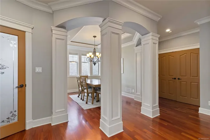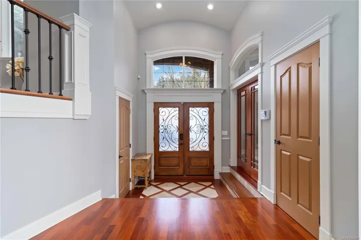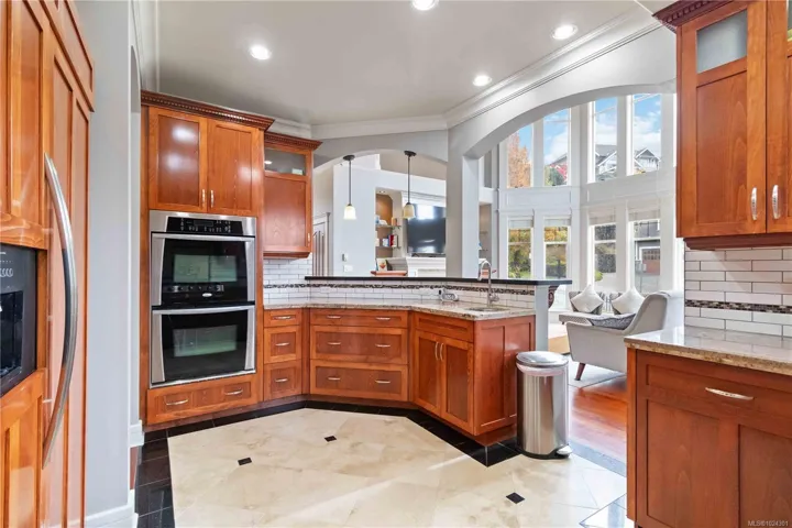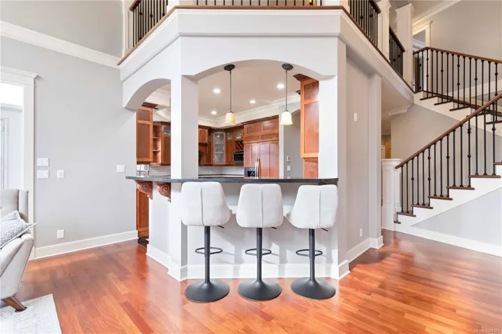 Explore this executive home on Bear Mountain, a testament to quality craftsmanship & great value in today’s market. Custom-built by the original owner, this property is nestled on a tranquil cul-de-sac. Enter through a grand entrance that sets the tone for the entire home. The Great Room with its two-story windows seamlessly flows into a chef’s kitchen. Main floor also features an office, powder room, dining, & two bedrooms, each with a private balcony & ensuite. Up the loft-style landing we find an additional bedroom & a large primary suite, complete with a walk-in closet, 6-piece ensuite, & a private balcony overlooking the treetops. The lower level includes a 3-car garage, ideal for recreational storage, and includes a well-appointed 2-bedroom suite. The suite, with its high ceilings & natural light, offers versatility for tenants or family. Enjoy the Bear Mountain lifestyle with world-class golf, hiking, tennis, biking, & dining nearby.
