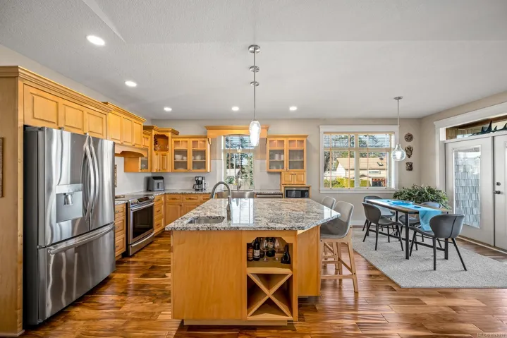 Welcome to 91 Larwood Rd—an immaculate, no-expense-spared custom home in prime Willow Point, just steps to the ocean and a short walk to groceries & cafés. The bright upper level is open-concept with gorgeous hardwood floors and a high-end chef’s kitchen with massive island, stone counters, quality cabinetry and premium appliances—flowing to dining/living areas with stunning ocean views and access to a huge covered deck for year-round entertaining. Two bedrooms plus a den/office up include a spacious primary with walk-in closet and a beautiful ensuite with tiled walk-in shower. Downstairs features a self-contained suite with private entry, kitchenette, laundry, full bath and 4th bedroom—ideal for income, guests or a home business—plus a dream triple garage with loads of workspace for all the toys. RV parking, metal fencing, garden shed, and tidy landscaping. A rare coastal package—must be seen in person. Move-in ready and truly special!