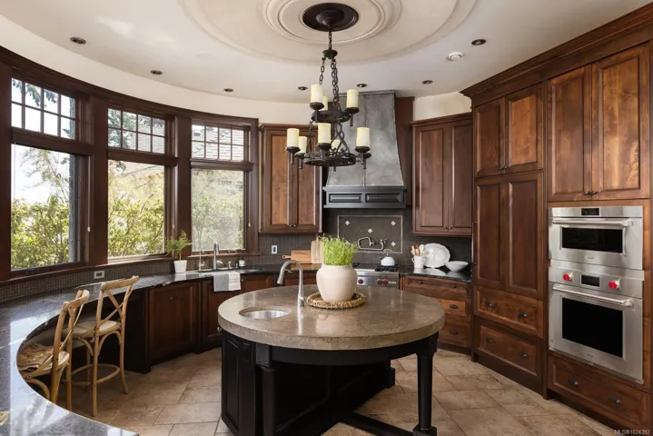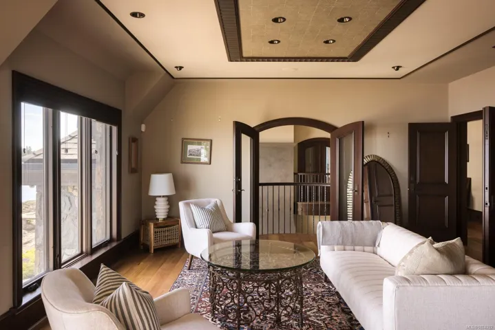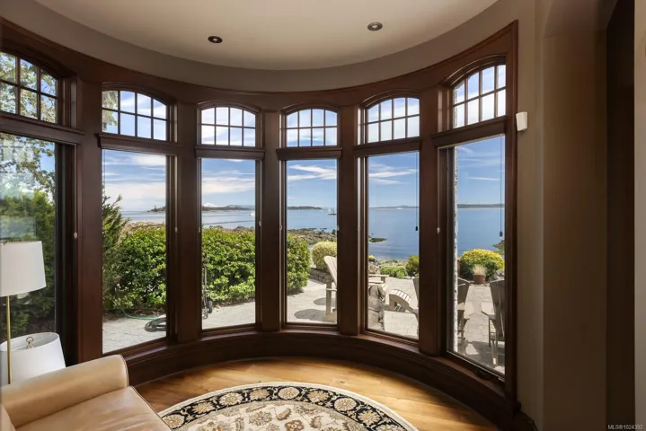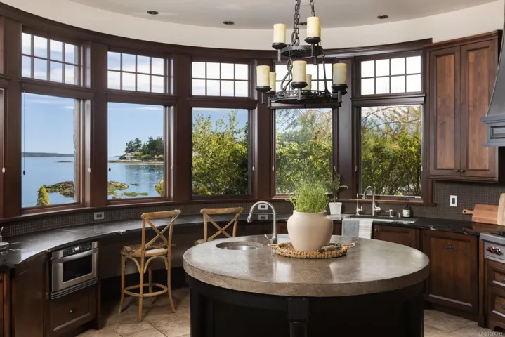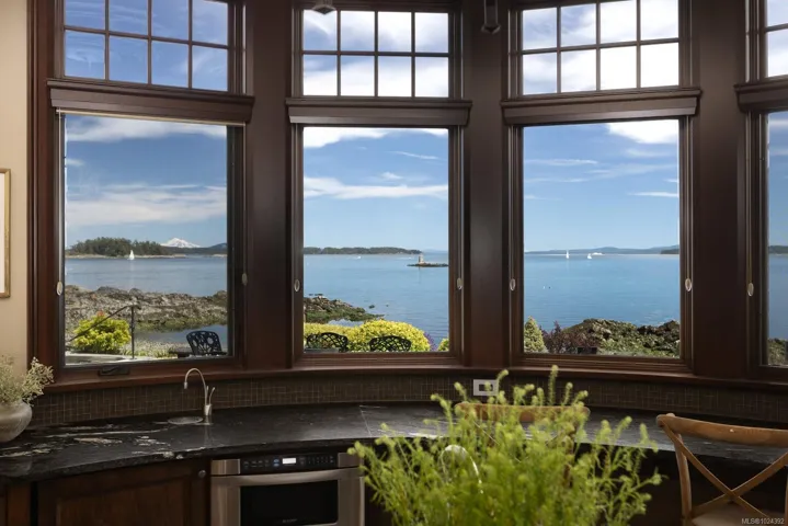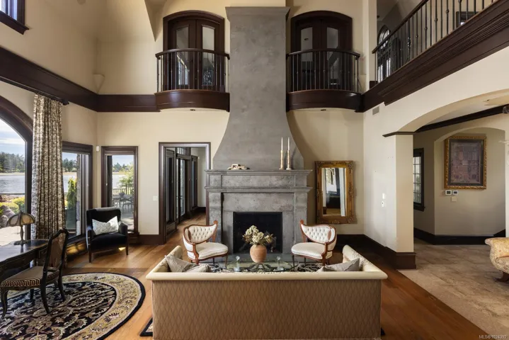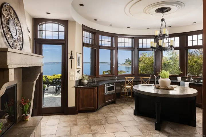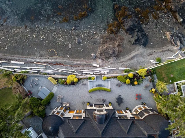 Welcome to this sophisticated West Coast waterfront retreat w/ sweeping views of the Gulf Islands & Mount Baker. This stunning stone residence features soaring ceilings & expansive windows, immersing you in the breathtaking surroundings. Designed for elegance & accessibility, it includes ground-level entry, main-floor guest suite & elevator. Main level boasts a circular kitchen w/ high-end appliances, butler’s pantry, dining room & great room w/ 21-ft ceilings. A charming study w/ built-in shelves & coffered ceiling provides an ideal home office. The spiral staircase leads to a luxurious primary suite w/ circular balcony, reading nook, sauna & fireplace. From the WIC, access the enclosed sunroom w/ fireplace & balconies. The media room & family room w/ kitchenette offer additional leisure spaces. Outside, enjoy expansive terraces,private hot tub & direct access to a sandy beach. Fully fenced and gated, this prime location offers easy access to amenities, Airport, BC Ferries & marinas.