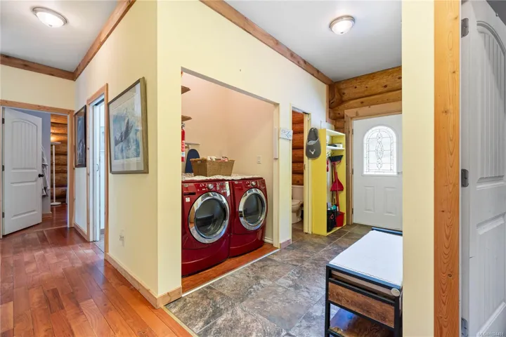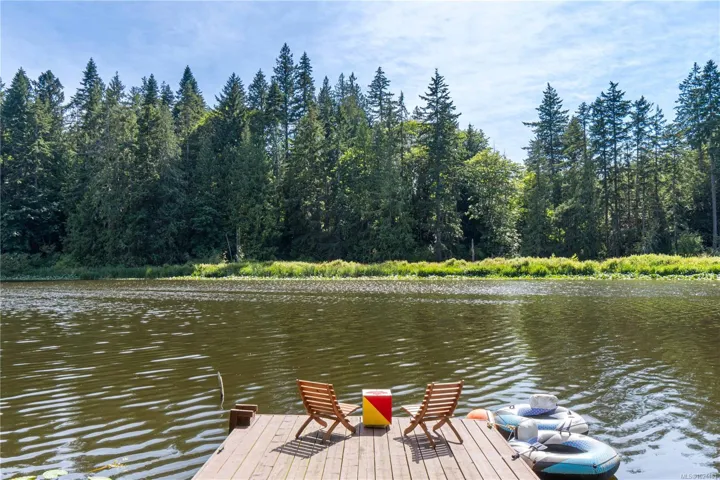 Lakefront 34 acre farm property with two private homes in Cedar and direct access to Hemer Provincial Park & Morden Colliery Trail! The land offers a mix of fenced pasture, irrigated gardens, fruit trees, mature forest & a pond —ideal for 2 families, hobby farming, multi-generational living, or a self-sustainable lifestyle. On the Rugg Rd side, a 2 bed + den, 1.5 bath log home features hardwood floors, spacious deck with lake views and a private dock. On the Hemer Rd side, a 4-bed, 2-bath home with a self-contained suite is the perfect hobby farm – with producing gardens, barns, large workshop, implement shed, serviced RV hookups, geodome, well, seasonal stream and upgraded power. Formerly an equestrian property, the riding ring and stalls could be revived to make this property suitable for horses. With farm status for reduced taxes and ecotourism permitted, this is a rare opportunity to own a private, versatile & truly magical estate, remote in feeling yet close to everything.
