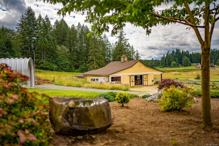 Luxury Custom Equestrian Estate on 8+ acres in picturesque Cowichan Valley. Immaculately maintained Rancher w almost 4000 sqft of living space. 5 beds, 4 bath, 2 kitchens, private legal suite. Chef’s kitchen w lux finishes. Great rm w stunning fireplace wall & walk out to covered deck =seamless indoor-outdoor living. Primary suite w spa-like ensuite w built-ins, travertine tile & luxury slipper tub. Family rm, 2 beds, double bath & wine/cold rm +legal suite. 2 car garage + carport w EV Charger. Horse Farm Detail: 80×160 arena w German Geo Textile (GGT) footing -optimal riding. Perimeter drain, extra posts for Pixio mount. 36×48 barn w skylights, 3 Hi-Hog panel box stalls w sand flooring & 1” rubber matting. Gravel runouts & paddocks fenced w 4.5′ horse tensile wire. 16×16′ addition w a gravel paddock, fenced 2 acre grazing pasture, heated tack rm w a sink & washer, 12×12 wash rack featuring Trusscore panels, wired for a Drimee. Turnaround for 3-horse bumper pull trailer+Large Quonset.